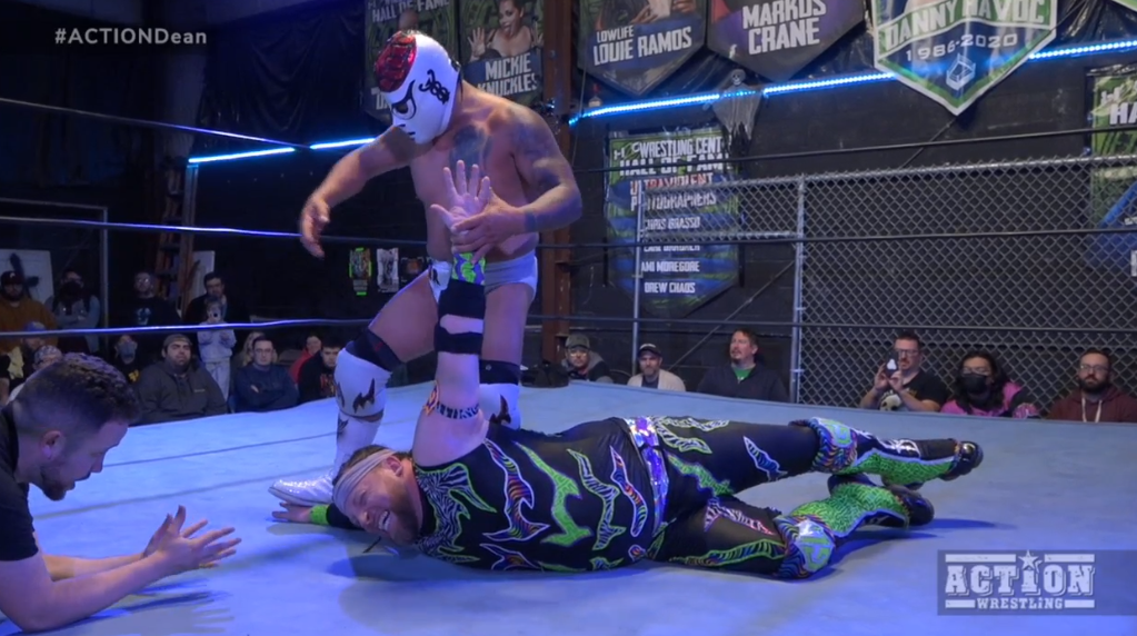 We then re-start NO DQ because WE DON’T HAVE DQS AT DEAN~!!! “I’m gonna kill this motherfucker” – Gringo. DO IT FOR DEAN~!!! Take his life for DEAN~!!! Cerebro gets sick of Loco’s saucy behaviour and ties up all his limbs for the submission. This was all kinds of great. DEAN~!!! Would have approved. ***½