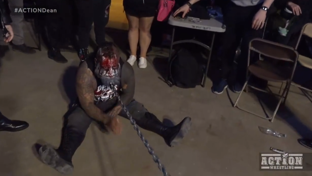 We brawl around a bit until Tank and Manders pop open a few beers. Tank doesn’t like the beer. I bet he’s a Pabst Blue Ribbon guy. He’s certainly a blading on camera guy. Tank and Manders headbutt each other to oblivion IN THE NAME OF DEAN~!!! Tank, the gigantic, ancient, bald gorilla can’t move but he can bleed and slap the Funk Spinning Toehold on pesky young whippersnappers. Manders accidentally kills Lawlor with a lariat and Tank ends up beating Manders. Result aside, this was surprisingly good. Chaotic, bloody and fun.