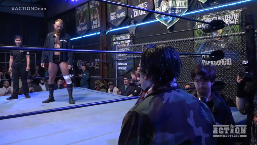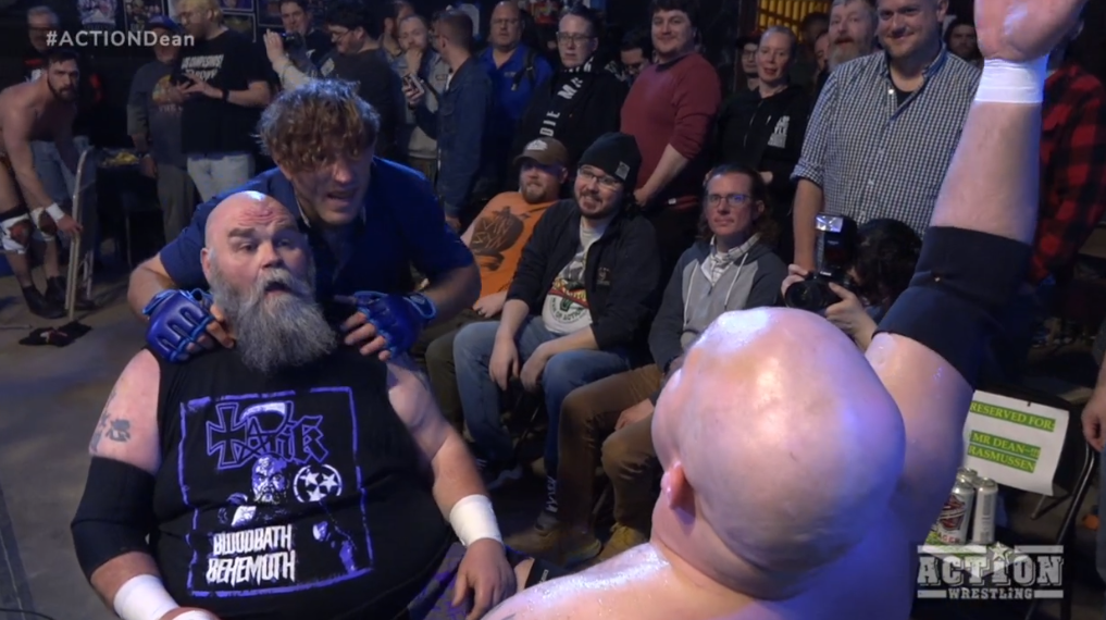 The match just makes no sense. Dreissker isn’t on the apron when they pull Edwards off to prevent the hot tag. Why? Dreissker gets the hot tag and he’s a big beefy boy. DEAN~!!! Would have approved. O’Shay then finishes with a CRAZY MOONSAULT. FUCK YES! Big boys doing big things.