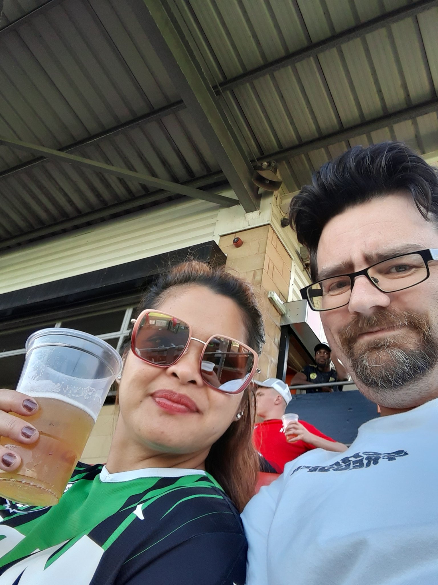 The temp in the car is 35 degrees. At 6pm. Fuck. It’s not ideal footballing weather. My wife, Maria, has volunteered to drive so at least we have a cool car to head up in. We get to Castle Vale and miss the turn to the ground, twice. The ground’s post code doesn’t actually take you to the ground. Little travel tip there. We headed through the turnstile and I didn’t actually need a ticket. Just to tell the guy on the door what my name was. We head in and I take a walk around.