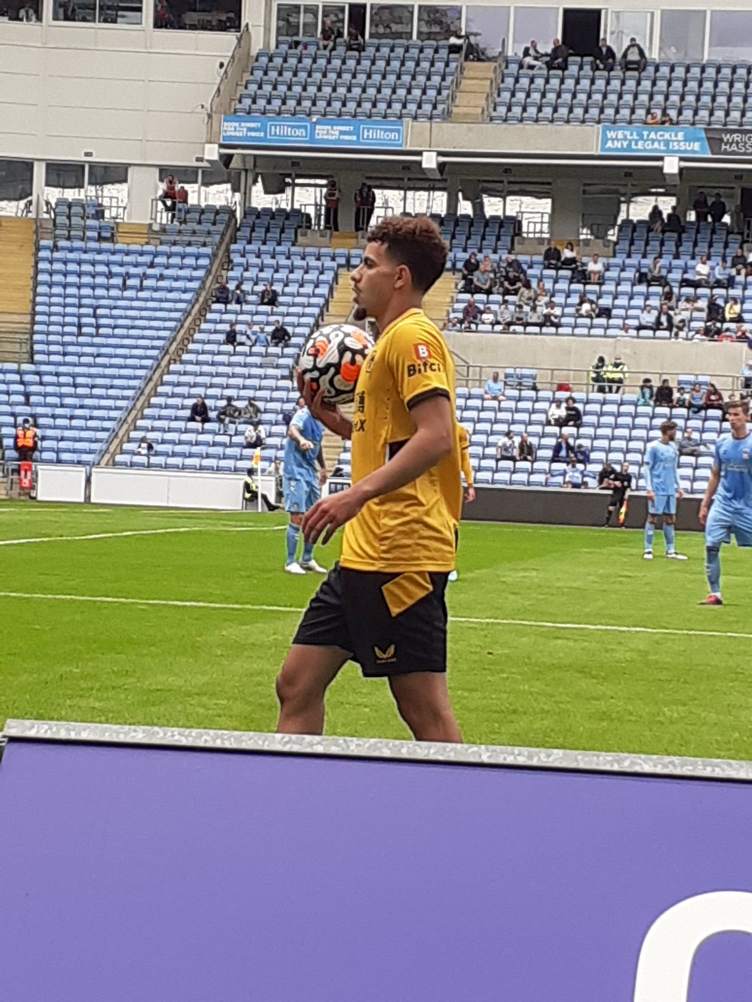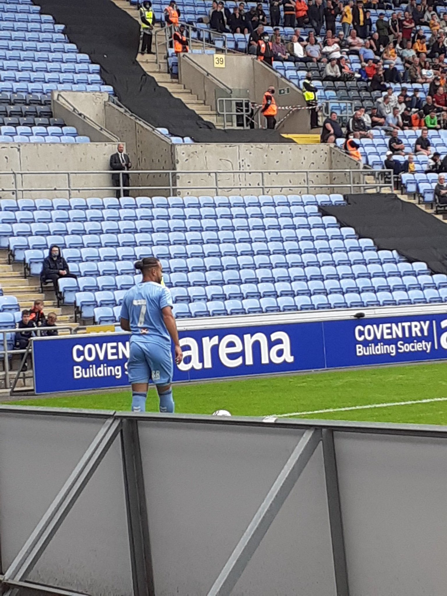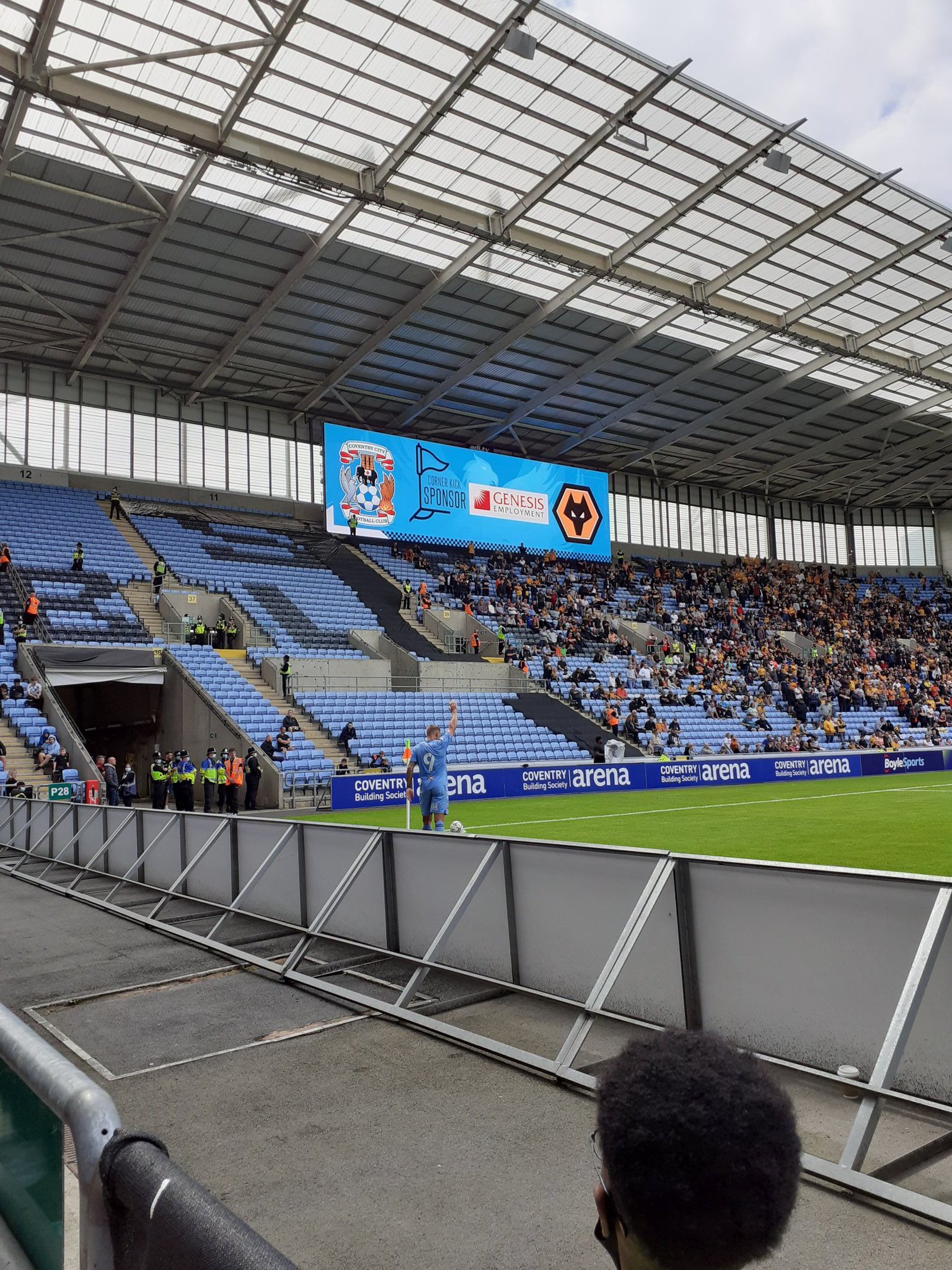 The seats we got were incredible. It was right by the pitch. I knew they were ‘front row’ and it was a very pleasant experience. Tom, who’s been many times, said he’s never been so near to the action. Sadly for him it’s not a day to remember for Coventry City. They’re behind after 7’. Fabio Silva ghosting in at the far post. This makes the Wolves fans even louder and they’re further greeted with a wave from Bruno Lage. It gets a little spikey and one of the Wolves fans is escorted back to his seat, all the while gesticulating towards the most ardent City supporters. He’s serenaded by chants of “yam yam”. A local slur against the people of Wolverhampton.