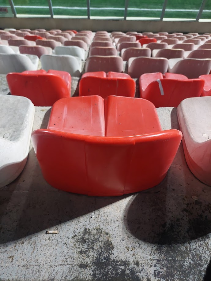 This is what I’m coming to recognise as ‘European’ seating. Cement with plastic seats nailed to it. A marked contrast to British seating with the pop up seat. I don’t really have a preference. These were in decent enough condition. If the ground was full, it would be uncomfortable, I think.