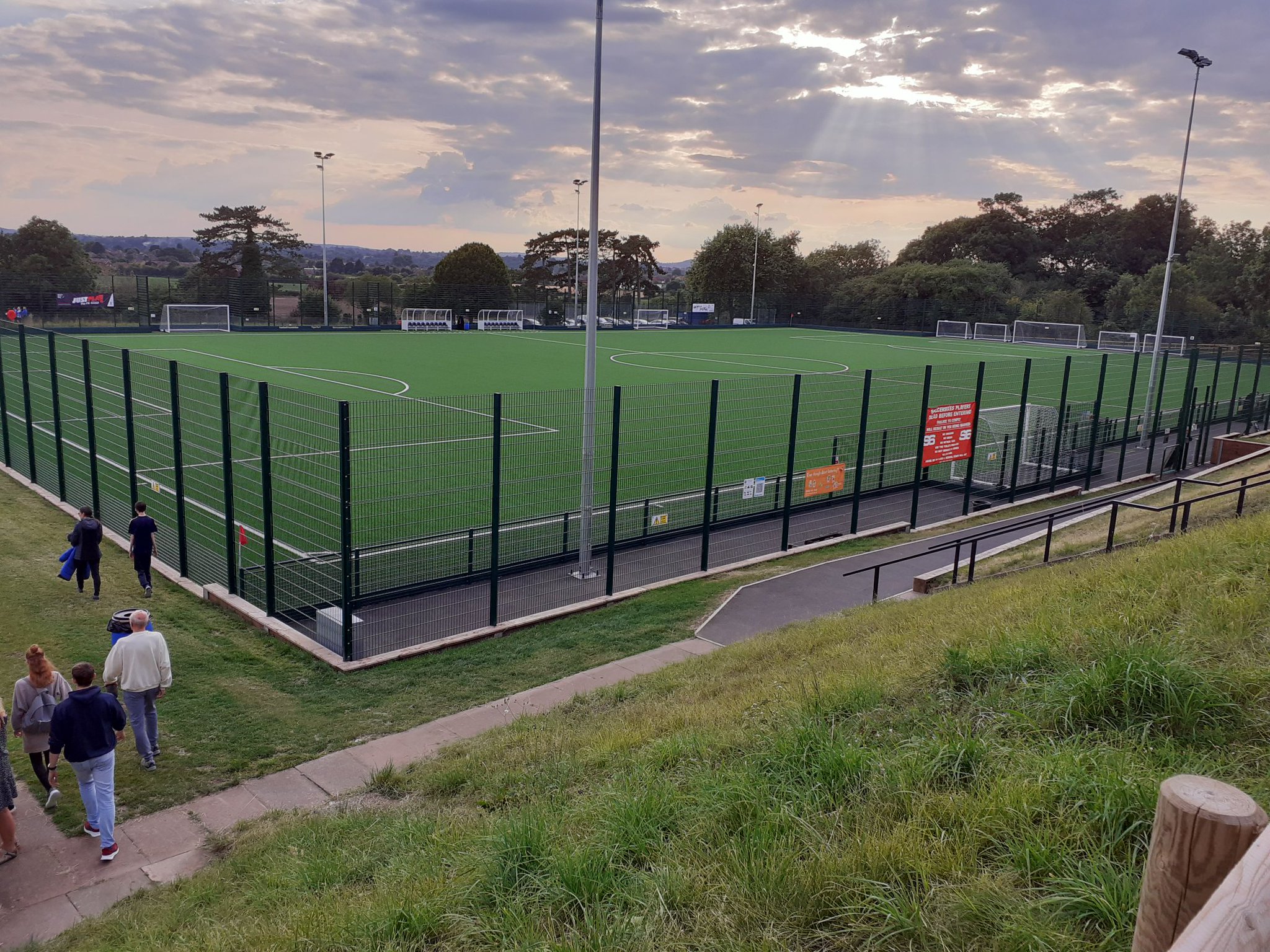 Here’s a view of the plastic pitch next door. One clearance landed over here necessitating a bloke having to walk around and get it. From this new vantage point I could see why people were flocking to the hill. There was a bar in the Worcestershire FA building. The whole bottom left hand corner was an open plan bar area. All the doors wide open because it was pretty warm. I nipped in to peruse their board of fare. I ended up with a pint can of Carling poured into a plastic glass. Living the fucking dream. It’s not even particularly cold.