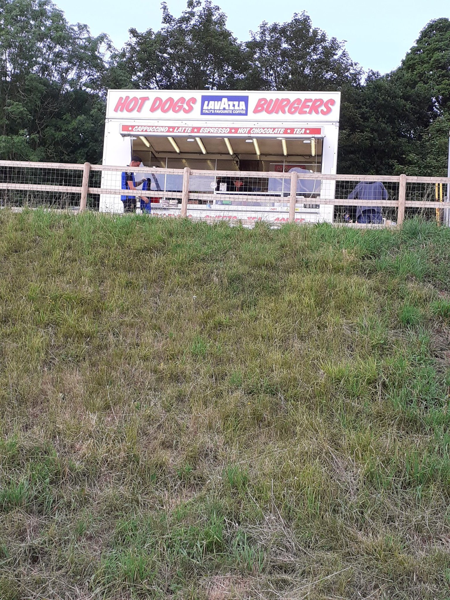 As we make our way around the pitch, past the dugouts, we spot a burger van atop the hill. I’m still debating what part of the ground I want to watch the game from. Josh nips up for a hot dog, which he opts to eat dry but apparently is good quality.