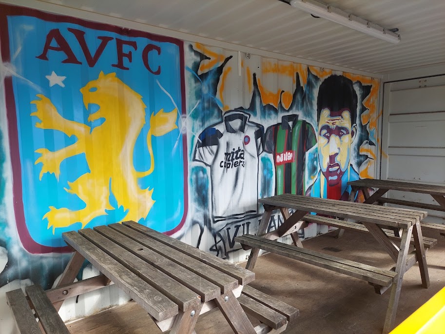 This is up past the shed on the touchline, and we lingered around in front of here. The spot just felt right. I get the feeling this area is open for food business for big games. It would make sense. If they’ve not separated fans for a league game at this level, they’re not going to at all. When I talk to people who aren’t from the Midlands about the sheer strength of support locally for Aston Villa, this is what I’m talking about. They are the Midlands most popular team by a country mile. All over the centre of the country.