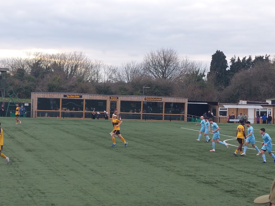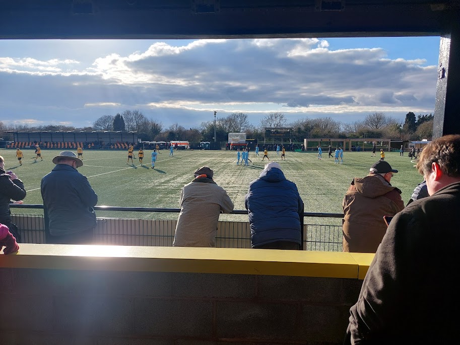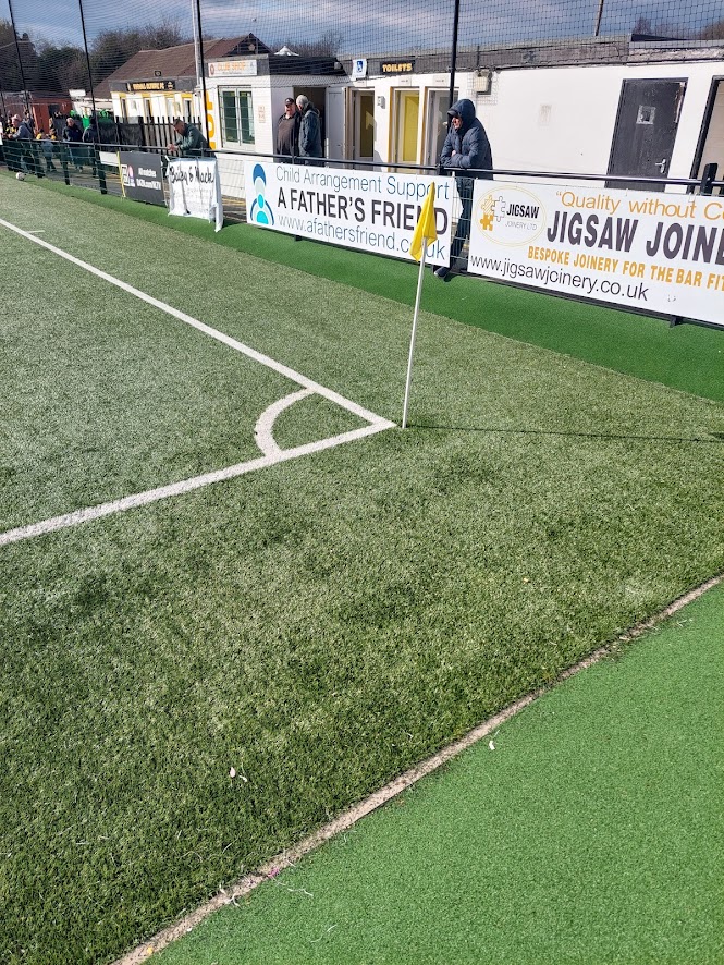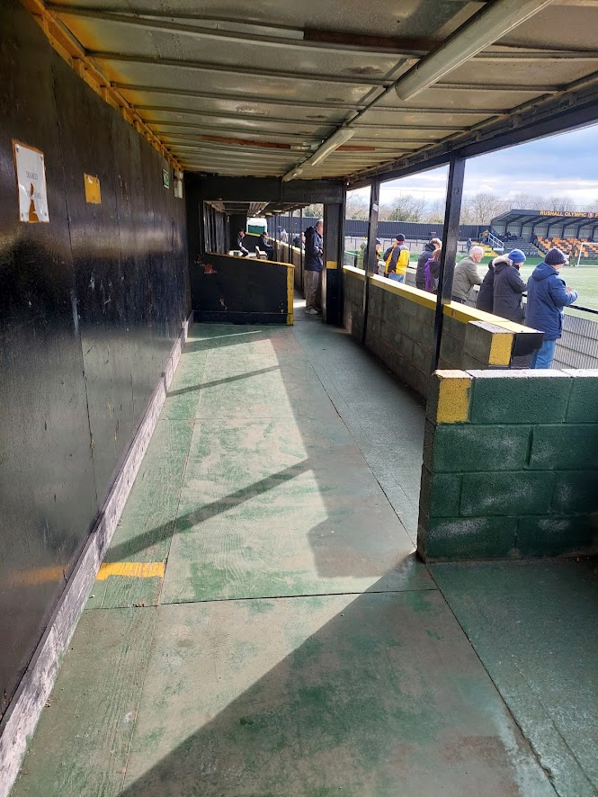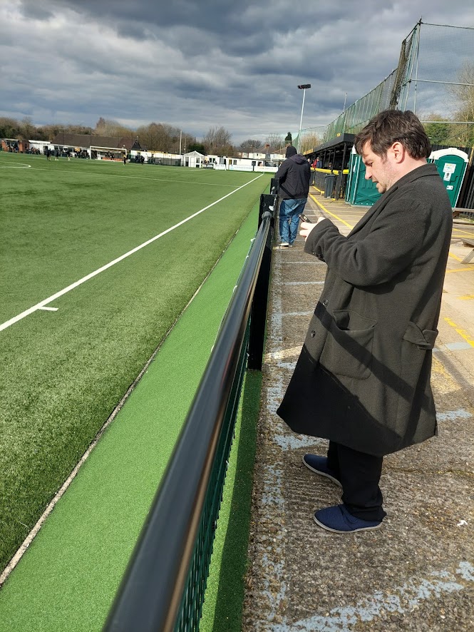 Immediate penalty for having astro and goals on wheels. That’s mickey mouse level stuff, lads. Two divisions below the football league, you should not have astroturf and goals on wheels. I hated the hospitality suite’s location. It should be above a stand or something. Having it take up a quarter of touchline space is criminal. The ground was a mix of pokey old fashioned standing space and two brand new stands. I didn’t hate it. **