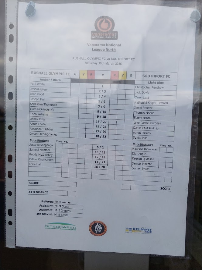 RUSHALL OLYMPIC vs. SOUTHPORT (NATIONAL LEAGUE NORTH)