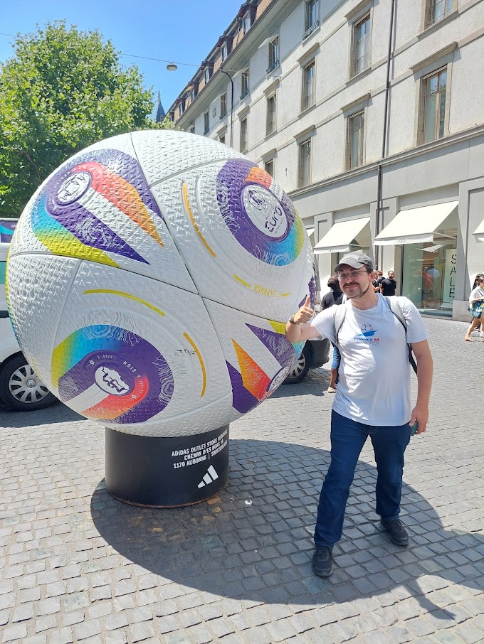 We land during the most recent heatwave and have to carry rucksacks around with 11 days of clothes in. I am warm, reader. Very, very warm. Luckily Geneva is a nice city that you can casually walk around and the cooling breeze off the lake takes the edge off. I saw a lot of people grabbing pictures by the lake and we ran into our first Euro 2025 related prize thing. I don’t know what the purpose of it was, but we didn’t win anything. I was hoping for some cheeky merch.