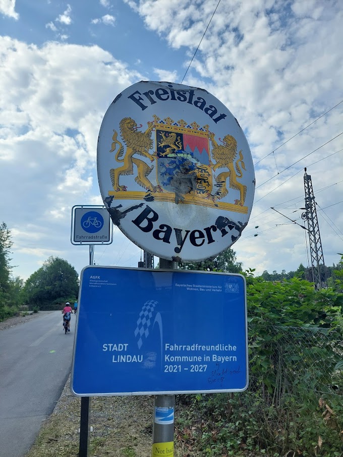 In a cheerful highlight Meg spots a pedestrian crossing where the green light is a footballer with a ponytail. She looks like she’s ‘crossing’ too, which is a nice touch. We get into Bregenz, have a few dunkels, get into the apartment and decide, on an impulse, to walk into Germany.