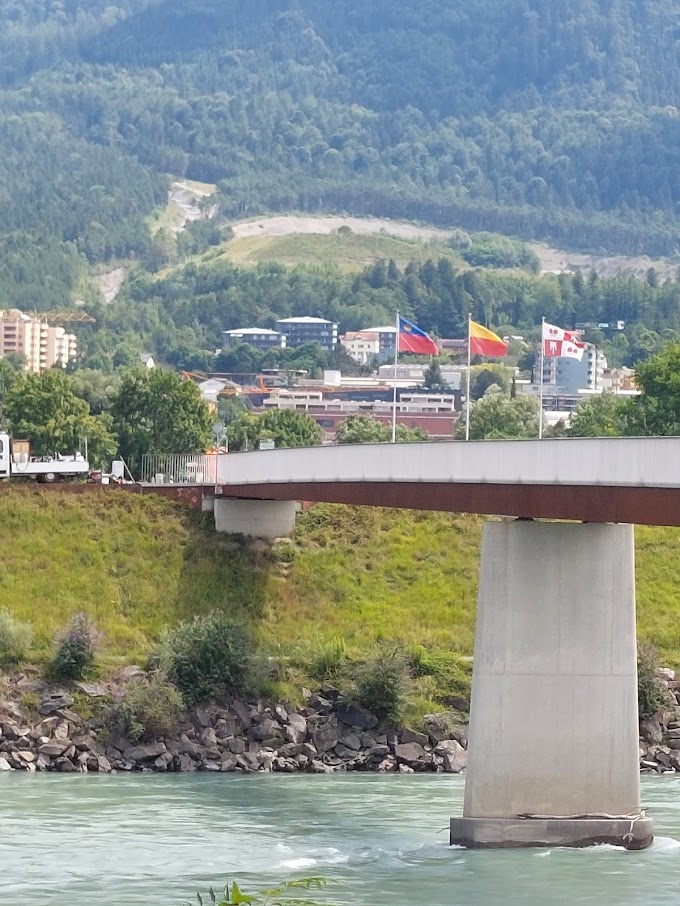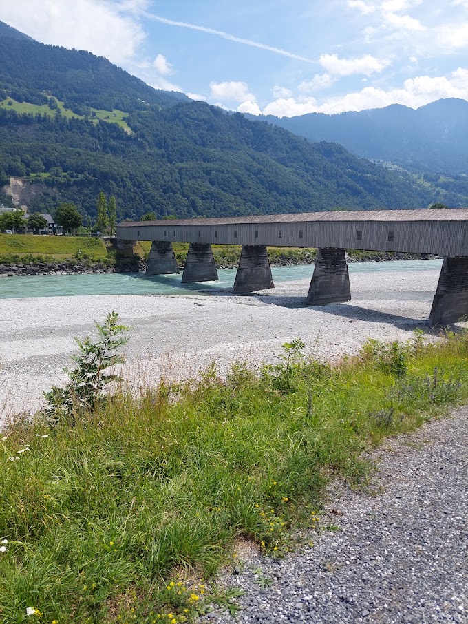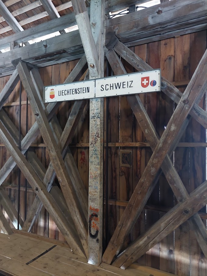 We carry on and eventually come to this bridge. A covered wooden bridge. How very Swiss. On the other side is another country. We had a small argument about how many countries I’d officially been to as I was counting Wales and Scotland. Look, UEFA think they’re different countries, so I am claiming them. If I do get to claim them Liechtenstein becomes the twentieth country I’ve been to. Considering the tenth was Germany back in 2017 (for Carat) the post Covid adventure has been real.