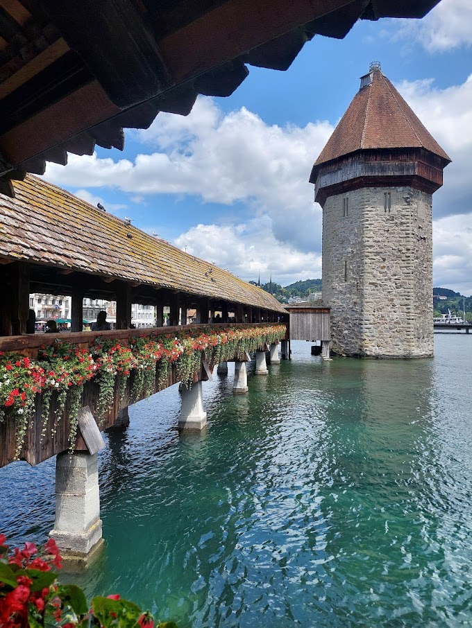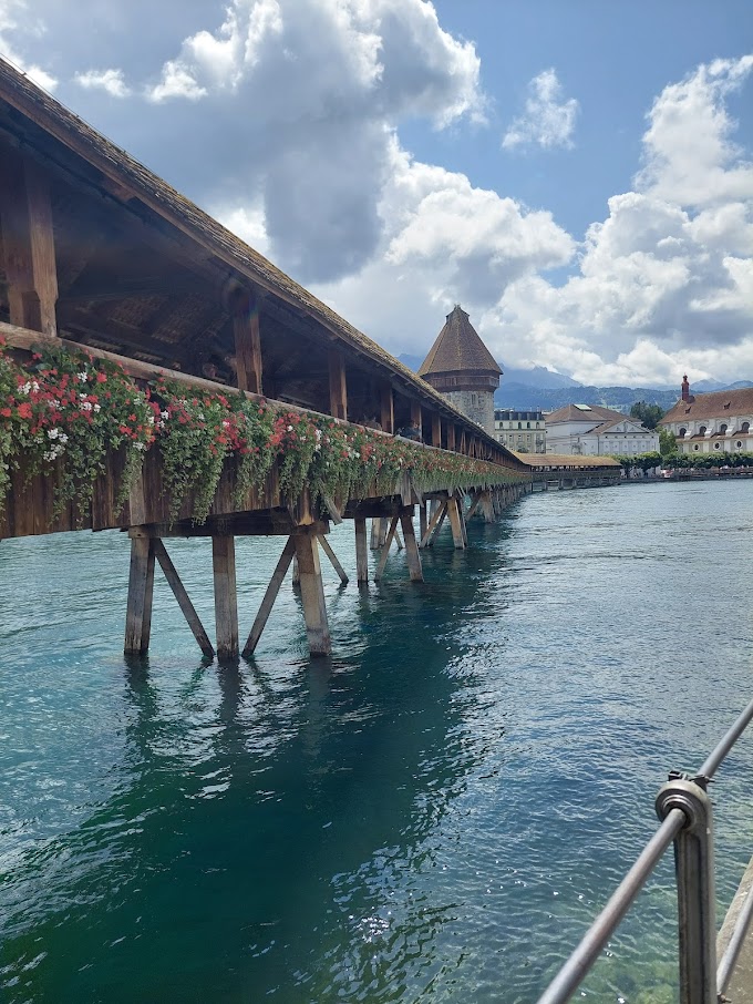 This “chapel bridge” is the oldest wooden covered bridge in Europe. Dating back 700 years. It’s a beauty. The Swiss do like a wooden covered bridge.
