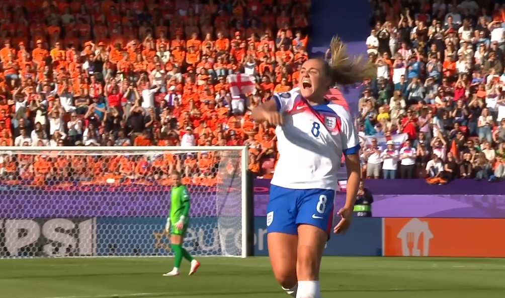 The stadium blares out crappy Dutch techno music. Is there a country in the world with worse musical taste than the Netherlands? In response the England band play “Sweet Caroline”. Both countries guilty of war crimes on the ears here. England have learned from the opening game. Carter has moved to central defence and Alex Greenwood takes over at left back. She has a much better game. Mead is on the bench after her poor opening game. And England start to mix up their range of passing.