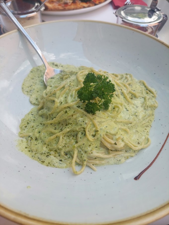 This hit the spot. I declare that I don’t want any booze and get a free shot of Schnapps after the meal. Fuck it, you only live once. It’s delicious. The pasta, not the schnapps. The waiter is one of those jovial Italian types and he asks how we liked the food. I give him a “molto bene” and he grins from ear to ear. “graci milie”. Every time I go away, I come back wanting to learn a foreign language and I’m so bad at it that it never happens. I should go and immerse myself in a language for a couple of months.