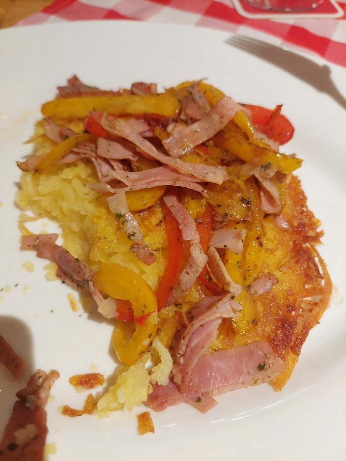 If you’re in Switzerland, ever, get some rosti down your neck. It’s a bit like pizza if pizza had grated potato instead of bread and the toppings were not baked into oblivion. God damn, it was tasty. I debated ordering a second one. The drinking continued unabated and after saying goodbye to Meg and Steve, we headed back to the apartment and continued drinking until the early hours.