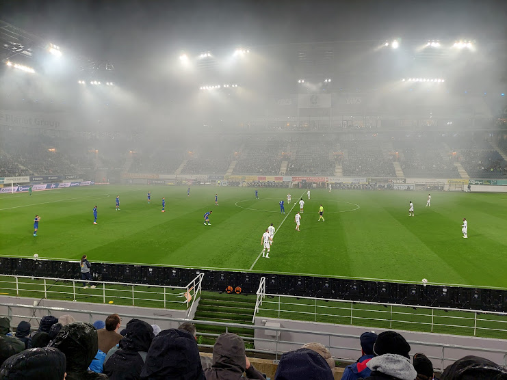 We drive out to the Planet Group Arena and apparently you need to pre-book parking. I did not know this. After driving around for a while we risk it on a side road. Risking it resulted in an eighty Euro fine. Oops. It rains as we park up. It rains as we walk to the ground. It rains as we try and find our gate, walking the wrong way around the stadium. It rains as we walk back from the wrong direction. By the time we get in we are soaked. Anyway, FOOTBALL. Finally, you only had to wait 2,200 words until I got around to it.