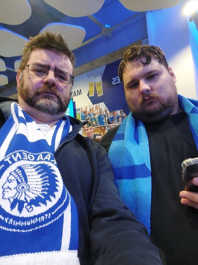 The Gent fans do a phone light gimmick thing in the second half. It’s mostly just the Ultras and it doesn’t catch on but occasionally their chants spread out across the ground. It could get JUMPIN in here on a big European night. Gent make a change and bring on Hyllarion Goore. The tricky winger turns the game with his twisty runs. Omri Gandelman fires Gent back into the lead and it stays that way until the game’s conclusion. It should be three in stoppage time but Kanga fires over with only the keeper to beat. The groans around us sum it up. He’s dreadful. “Fucking Kanga!”