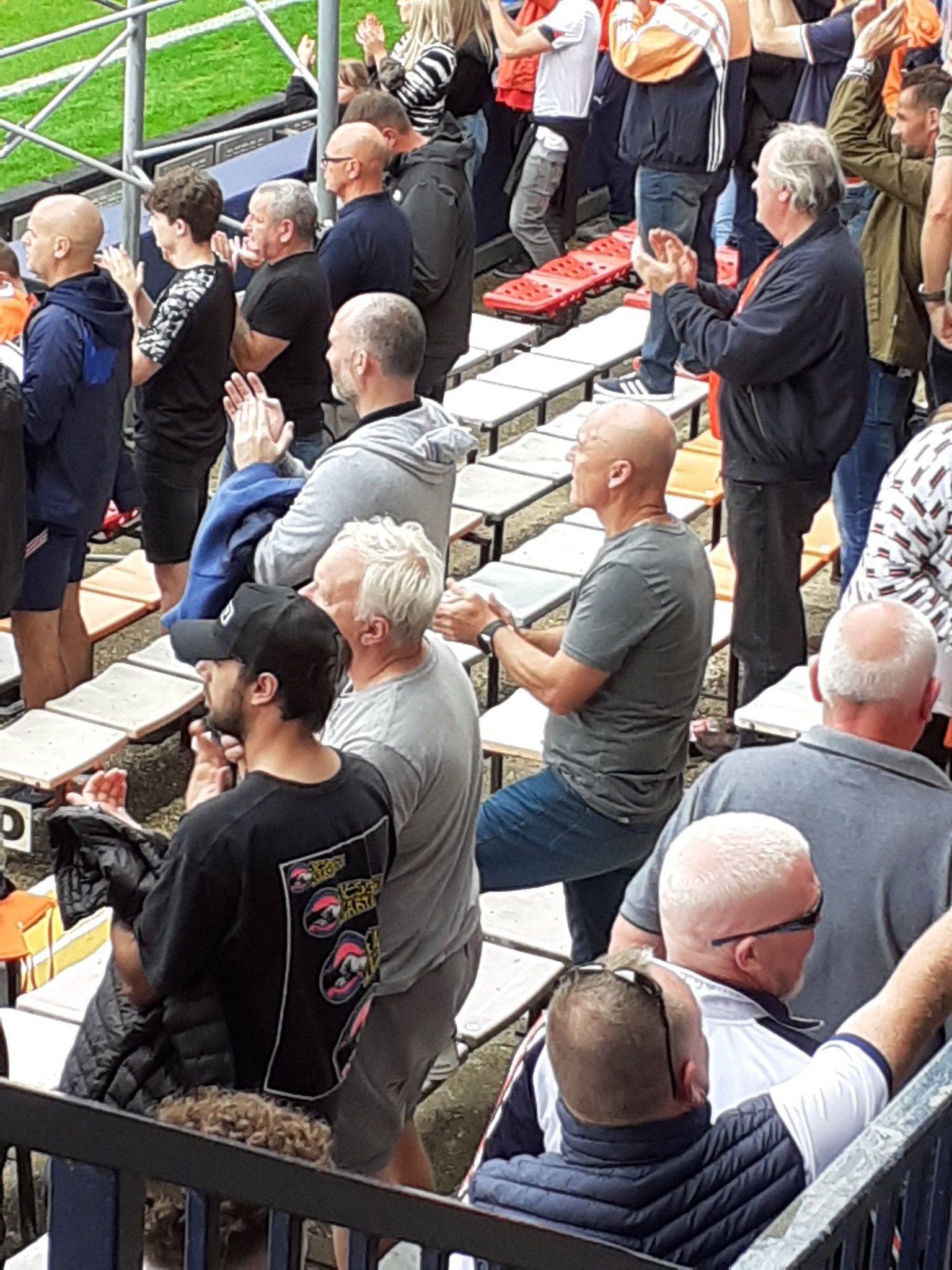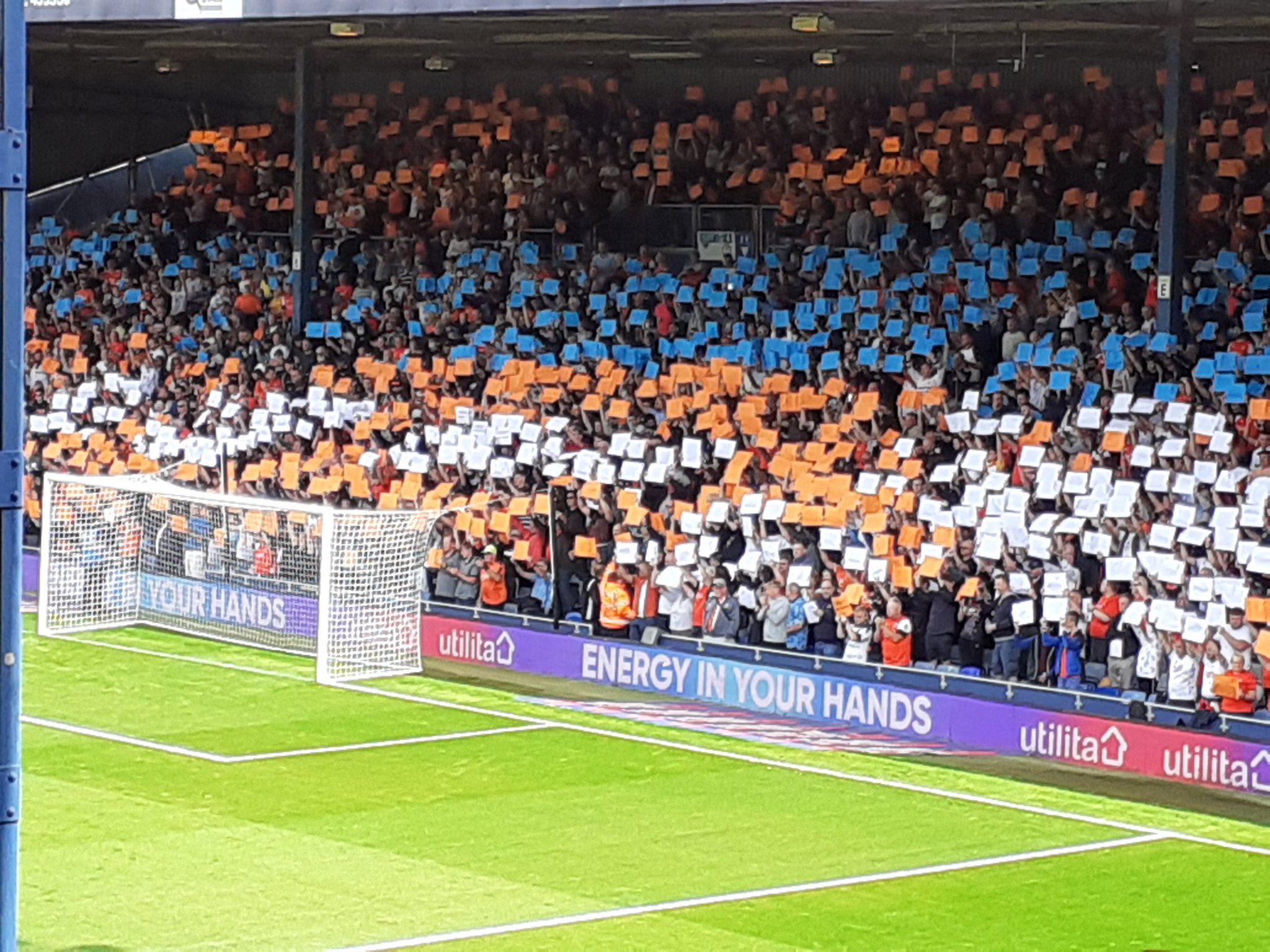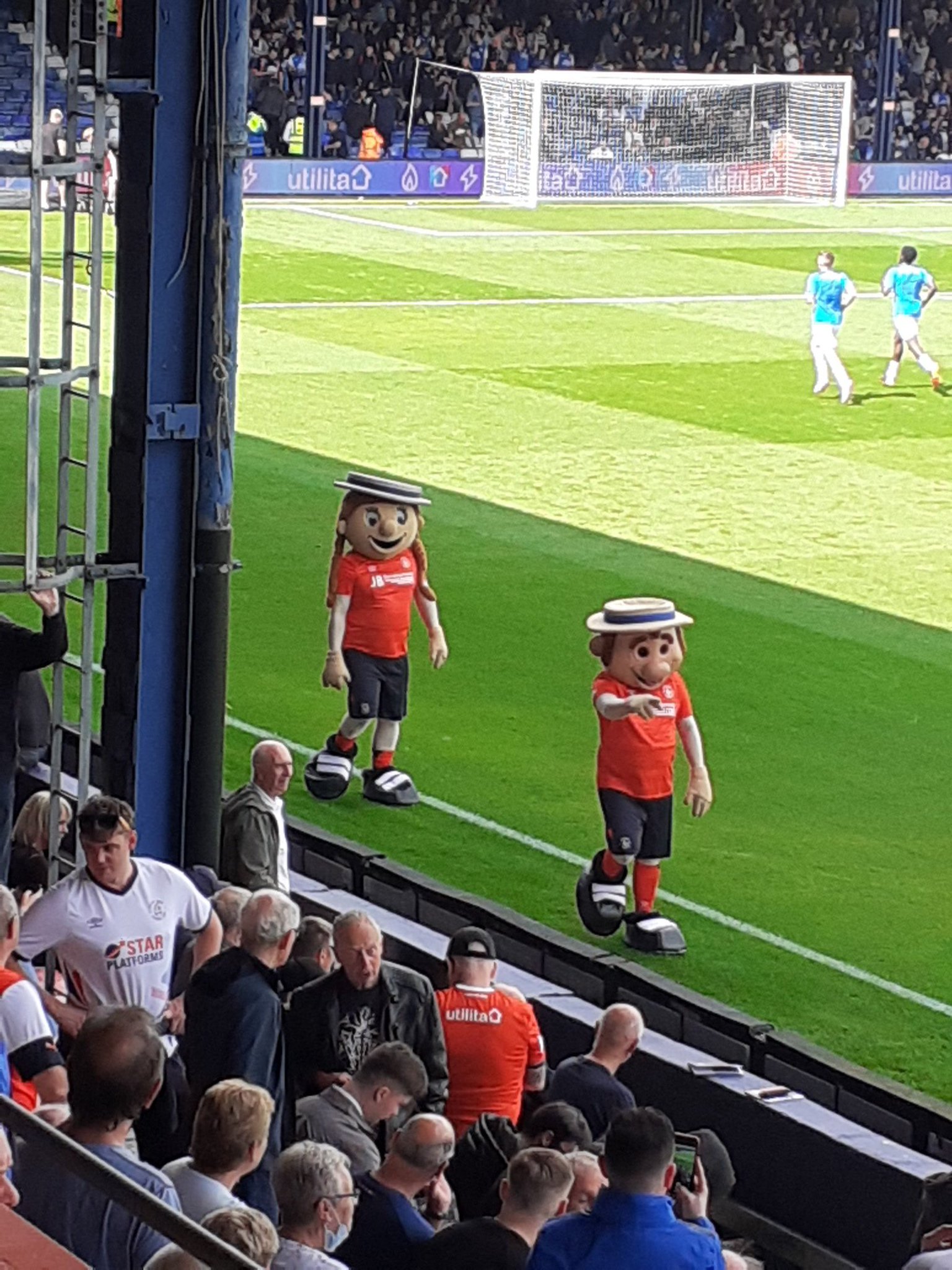 The pre-match is a nice experience with both mascots strolling around. That’s Harry and Harriet Hatter. I believe they’re siblings rather than man and wife. The crowd do a minute’s applause before the match in memory of Luton fans who passed away during the Pandemic. I believe they left the season ticket holders seats empty who died, as I saw empty seats dotted about but it was a sell out. The home end display placards before kick off sending support to Luton legend Mick Harford who is battling prostate cancer. Harford played for Luton in the 80s and 90s before a few short managerial spells at the club too. The fans sang his name throughout the game. It was really quite lovely.
