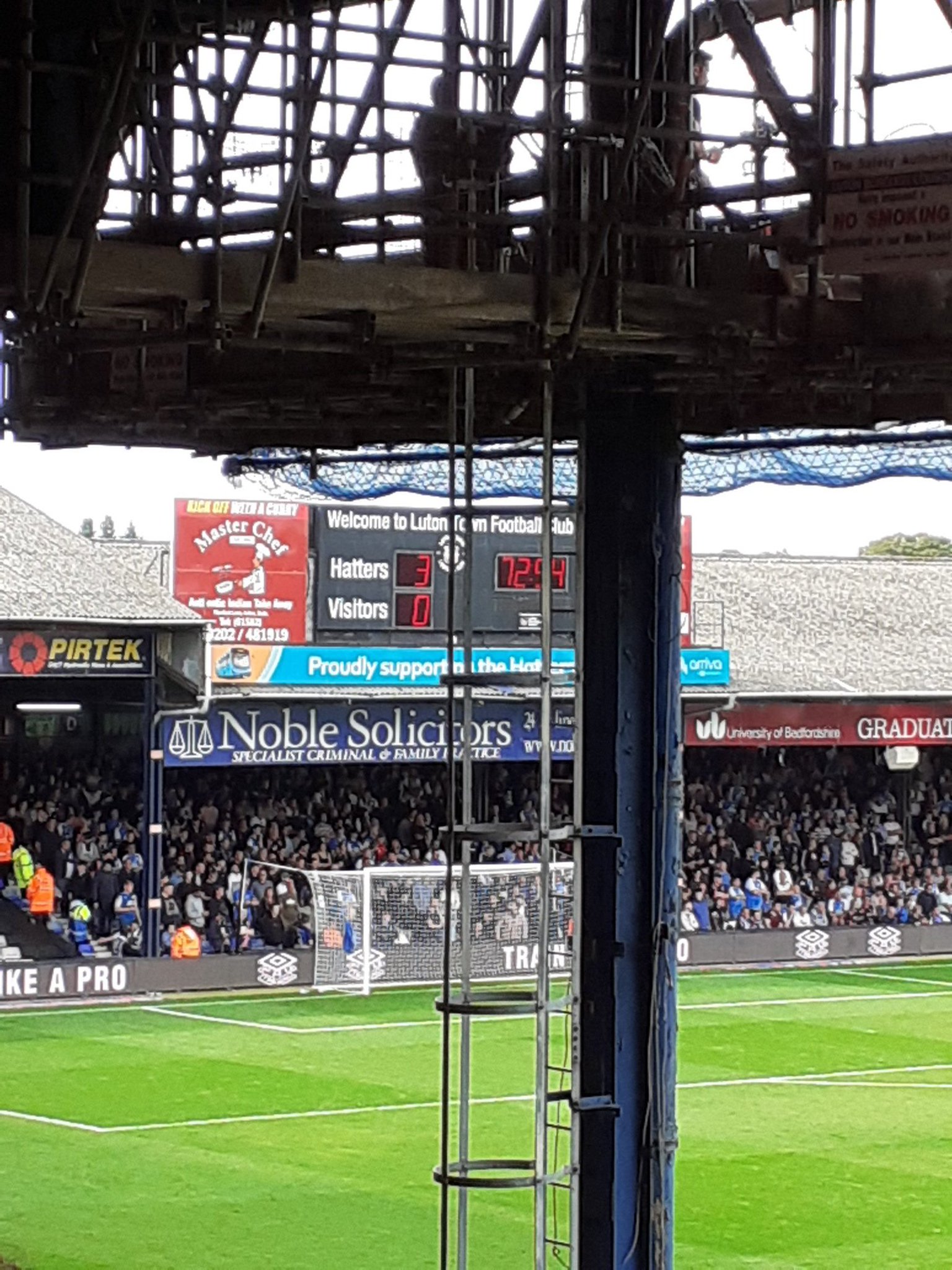 There are flags and banners around the ground including “Scandinavian Hatters”. I imagine a bunch of crazy Swedes in a tiny room somewhere screaming at the TV for more updates on Luton Town FC.