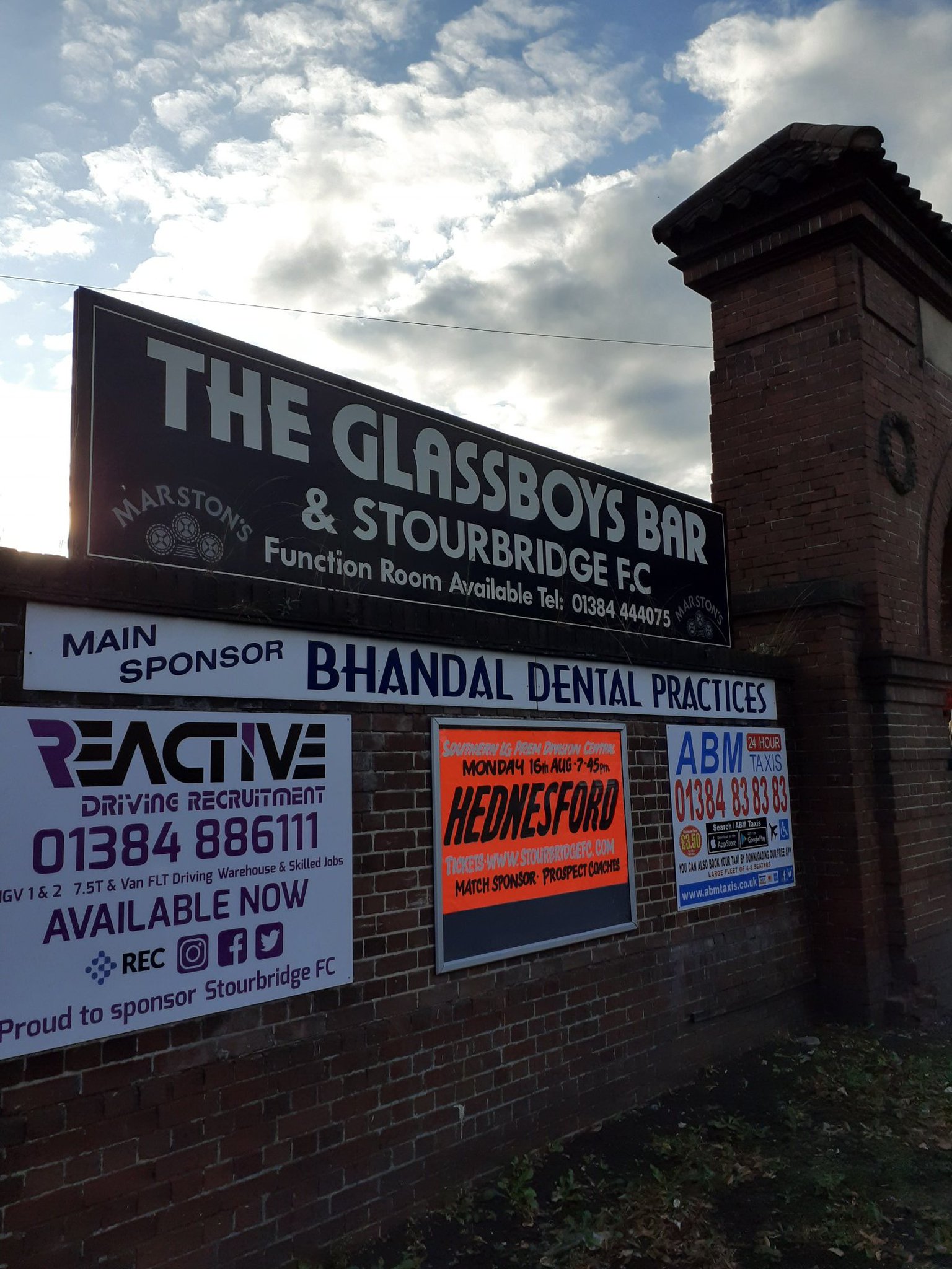 We arrive at Stourbridge Junction and it’s a nice night so we walk to the ground, deciding against the Stourbridge Shuttle, a bizarre single carriage train that goes backwards and forwards to Stourbridge Town around a mile away. The roads in Stourbridge are all terrifying. There seem to be no sensible places to cross them and traffic belts through Stourbridge in a hurry to get somewhere else. There’s also a load of fast food places. Down one road alone is McDonald’s, KFC, Dominos and Greggs. It reminds me of America.
