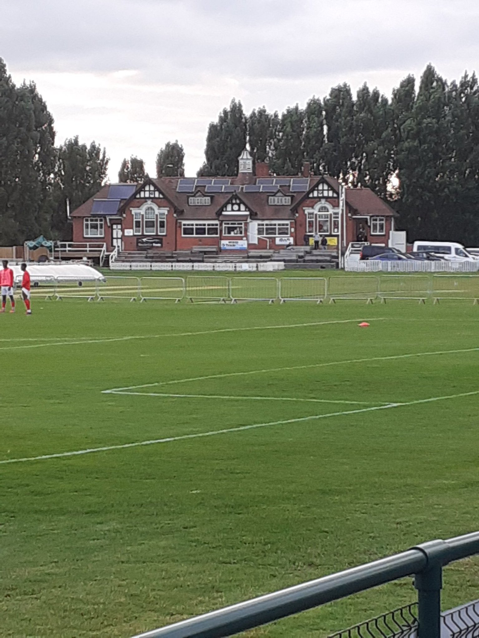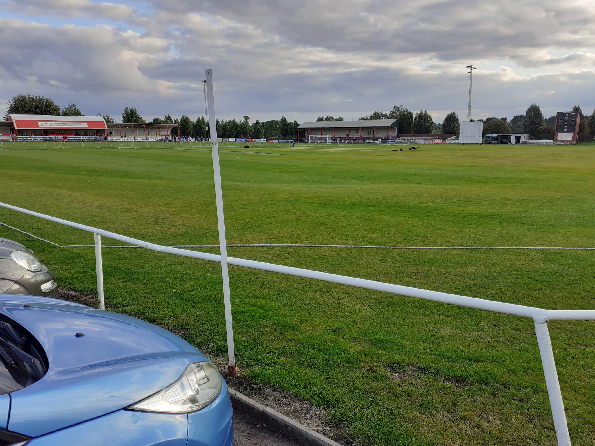 Stourbridge FC was originally a cricket club and not much has changed in that regard. The pitch is still attached to the cricket one and as a result only has three sides. There are two stands. One to our left, which is the only seating area and one at the far end, which is a massive shed with chicken wire down the middle to keep the away fans in their place.