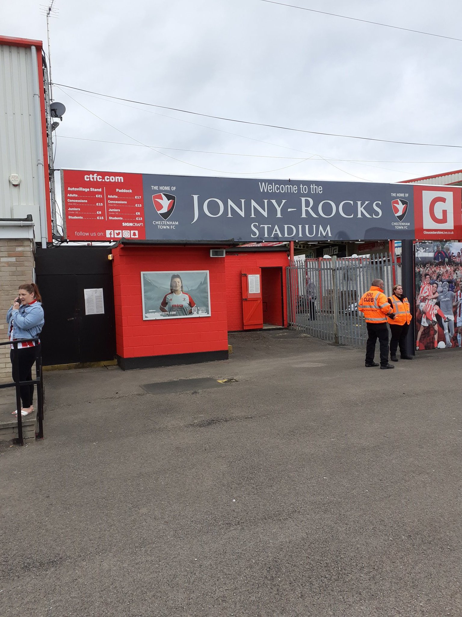 We’re off to a flier today because I forgot the tickets! Luckily Maria was picking me up from work and brought them with her. Josh is also in tow as we go to a game as a family, of sorts. It’s an uneventful drive with the motorists in Gloucestershire being considerably better than those around the Potteries and northern Birmingham for our, frankly terrifying, Port Vale journey. We get there very early and get into the community centre car park, which houses overspill from the ground. The actual ground’s parking is reserved for people who’ve booked it. We paid £6 for parking, which Maria couldn’t help but label as “expensive”. It was a pound more than Port Vale.