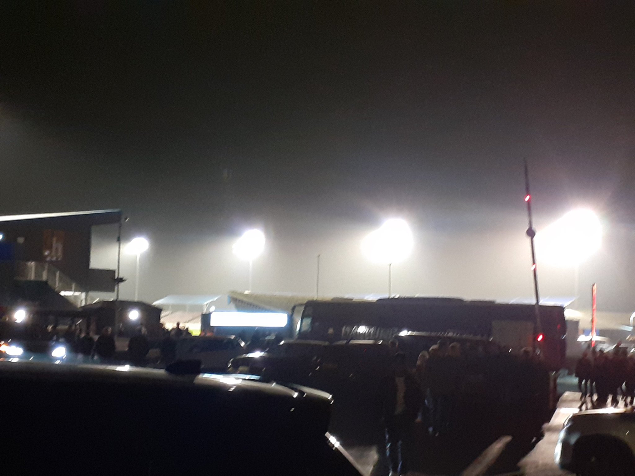 Here’s another look at the stand I was in. Those big beams randomly interfering with the view all the way down the side of the pitch. At half time they had one of those big extended blue tunnel gimmicks. You can just about make it out here as it’s a darker blue than the rest of the stand. The ground emptied during half time with people heading to the bar. I dread to think how bad the bogs got.