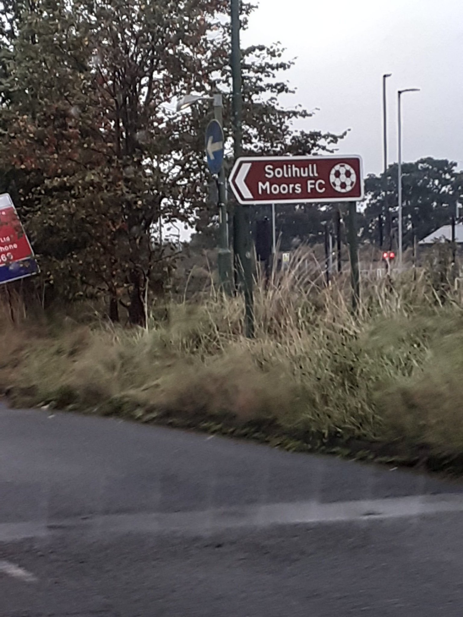 There is parking at the ground. However, you need to pre-book it. I was all cocky thinking we’re in non-league, how busy is it going to be? The steward helpfully directed us to a nearby NCP car park. Now, normally when a steward directs you to a nearby car park it’s because they’ve got an arrangement with said car park and you can actually park there. NCP is 0.7 miles from the ground and, as we discovered, you can’t park there. Solihull is 90% car parks but you can’t use any of them! Our woes are complicated by Maria missing her turning into the NCP car park and we have to drive around.