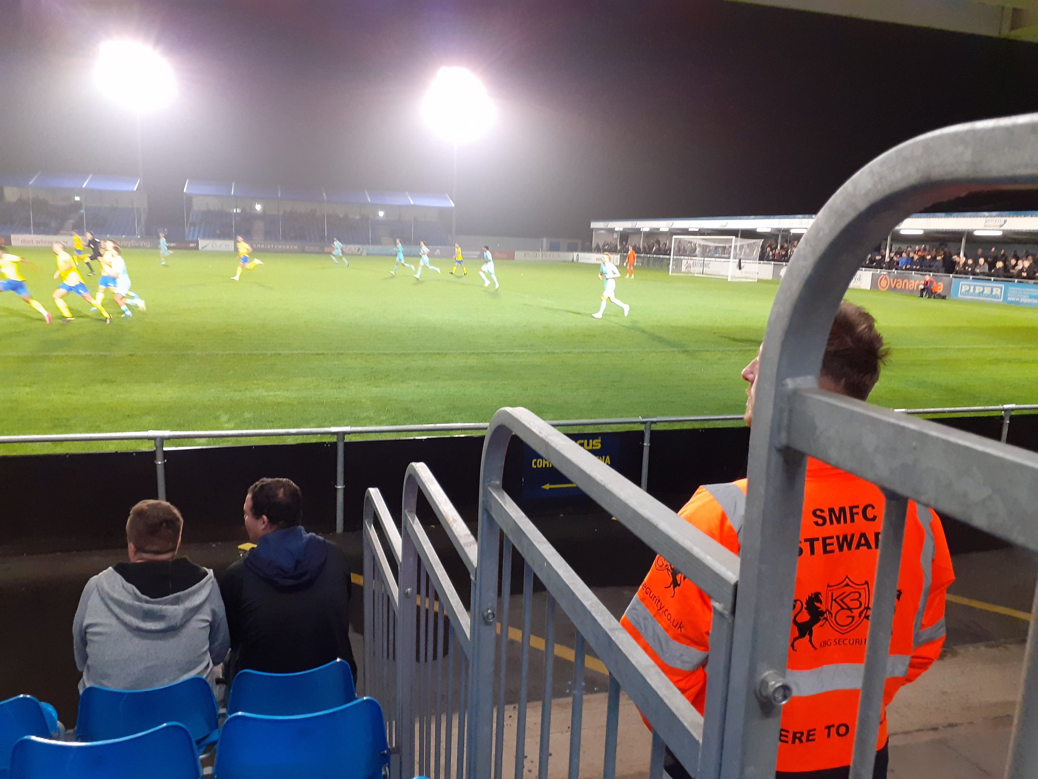 I know I’ve slated Solihull Moors here and they deserve the abuse for various inadequacies the Damson Parkway suffers from. If we weren’t dealing with COVID maybe I’d laugh at some of the shittier aspects of the ground and say they were “quirks”. I’ve seen worse facilities this season but not at this level. Racing Club Warwick has unbelievably bad toilets but they’re not in the National League. They also have nowhere near the level of attendance. Solihull had 1,232 for this game versus a few hundred at Warwick.