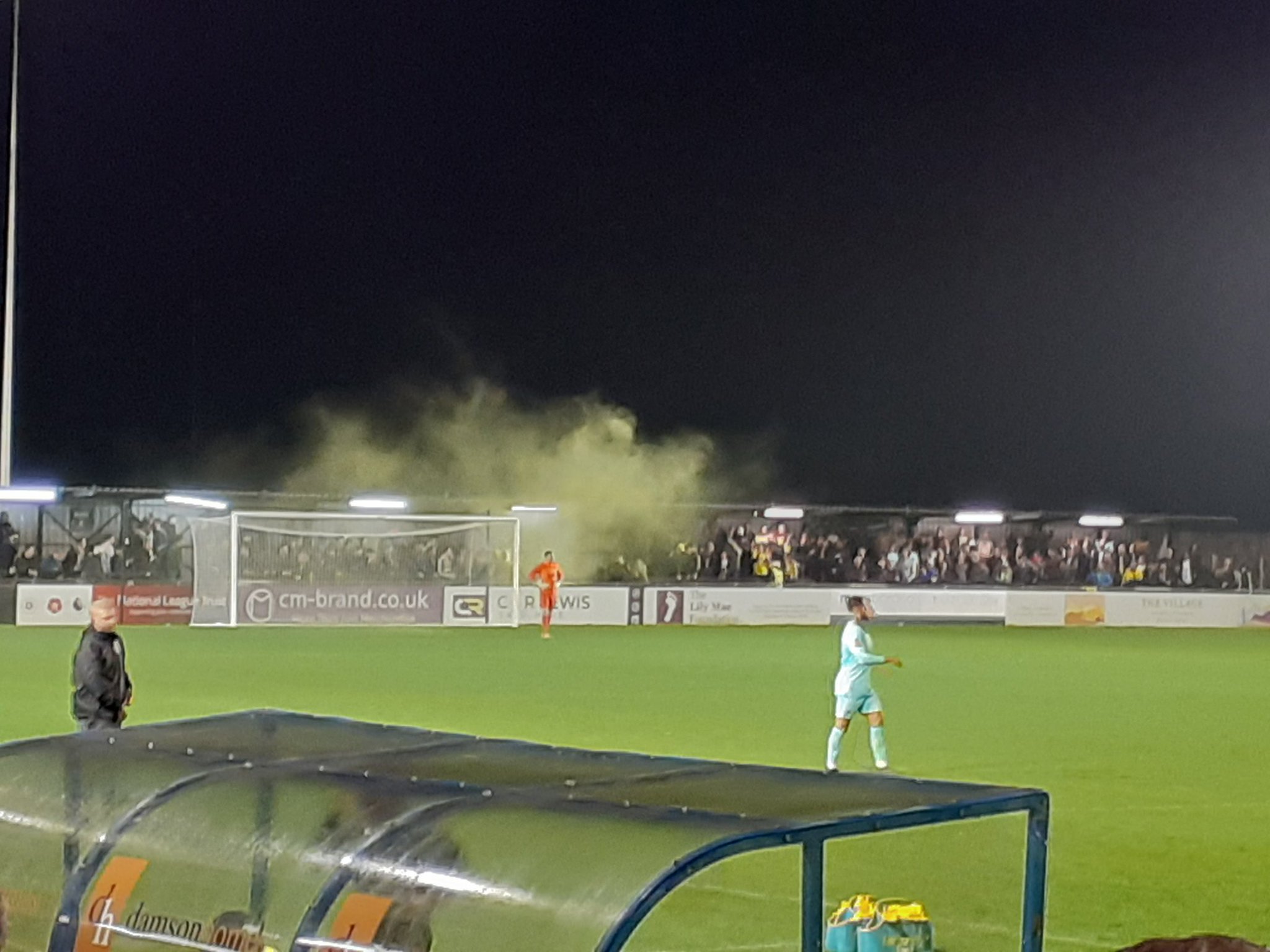 Again, this is the kind of thing that shouldn’t be brought into a ground and under league rules this person could be prosecuted. I personally quite like smoke bombs as they add to the atmosphere but due to fires at grounds (and the Moors should know this better than most) fireworks are forbidden among supporters.