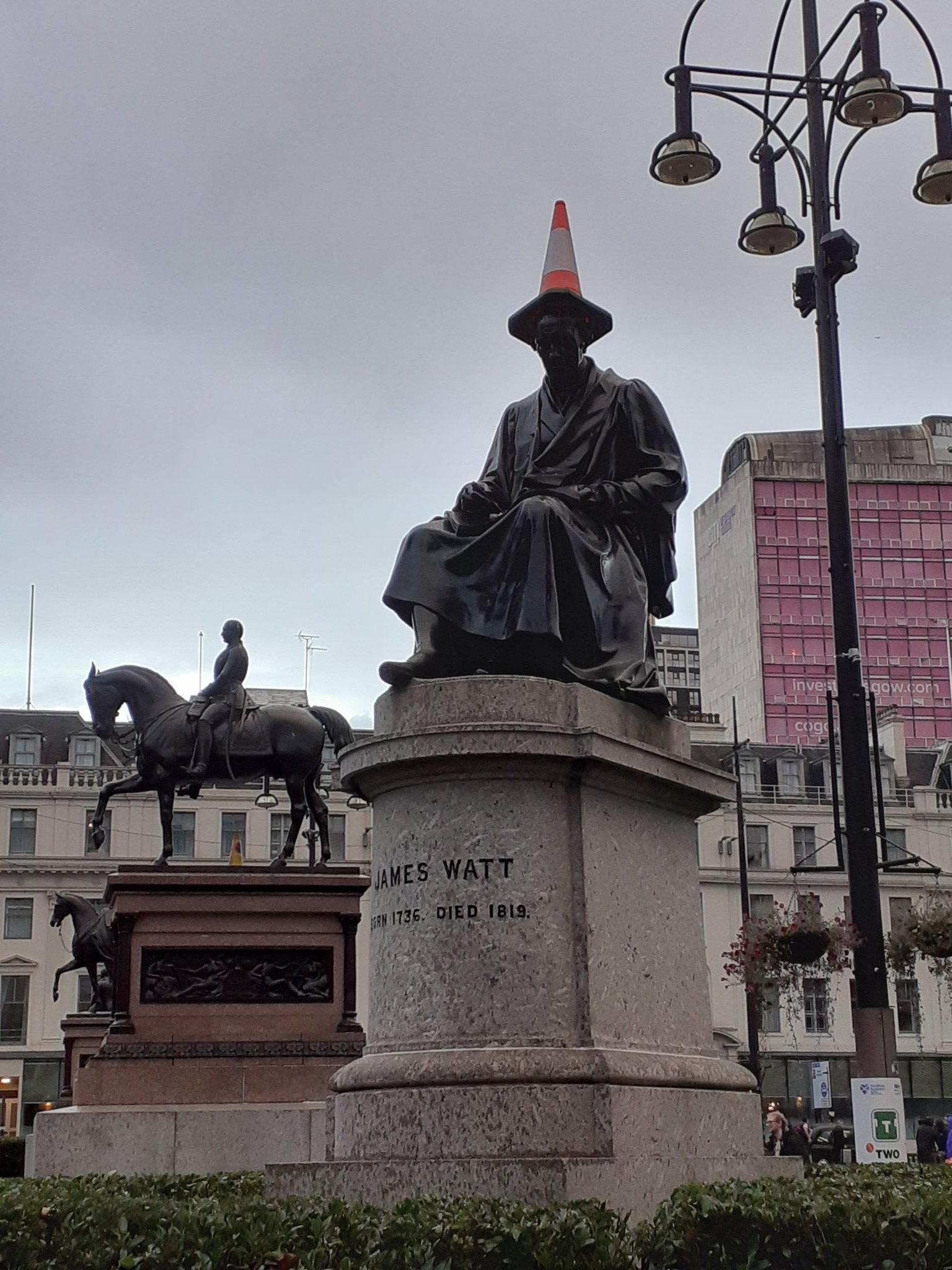 Despite it pissing it down in Glasgow we still managed to get some tourist stuff in. I’ve seen most of central Glasgow before, but Maria hadn’t so I showed her around the various statues with traffic cones on their heads.