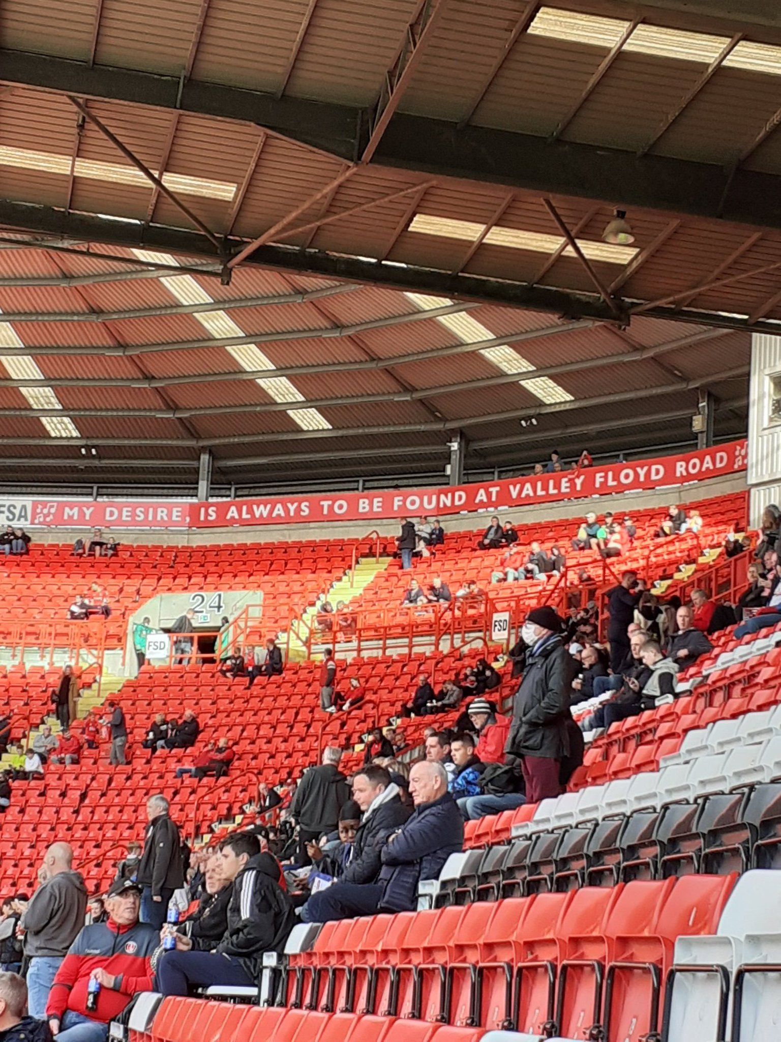 A damning indictment of Doncaster’s attacking prowess was when three pigeons occupied Rodrigo Vilca’s right wing spot for several minutes. Only scared off by a George Dobson pass back. The half time entertainment consisted of “Barry” having a go at the crossbar challenge. He missed hopelessly. “Did you enjoy that?” asks the MC. “No” replies Barry to laughter from all corners of the ground. In front of us a couple of old boys almost come a cropper thanks to the steep steps at the Valley. Myself and Lewis both had a sense of vertigo on emerging at the top of them. It’s positively South American.