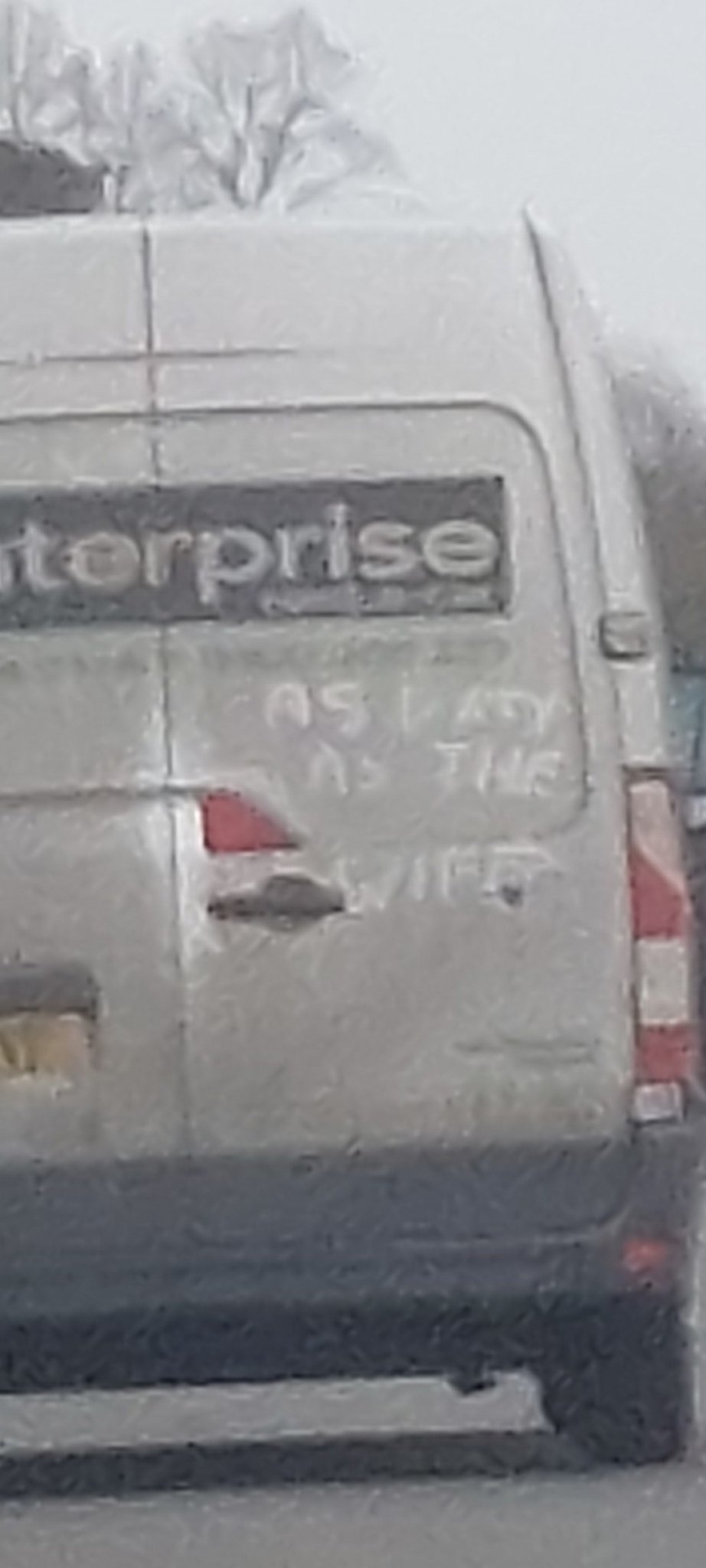 On the road then, after lunch, and we’re on route to Tom in Sutton Coldfield when we spot a filthy Enterprise van on the A38. How filthy?