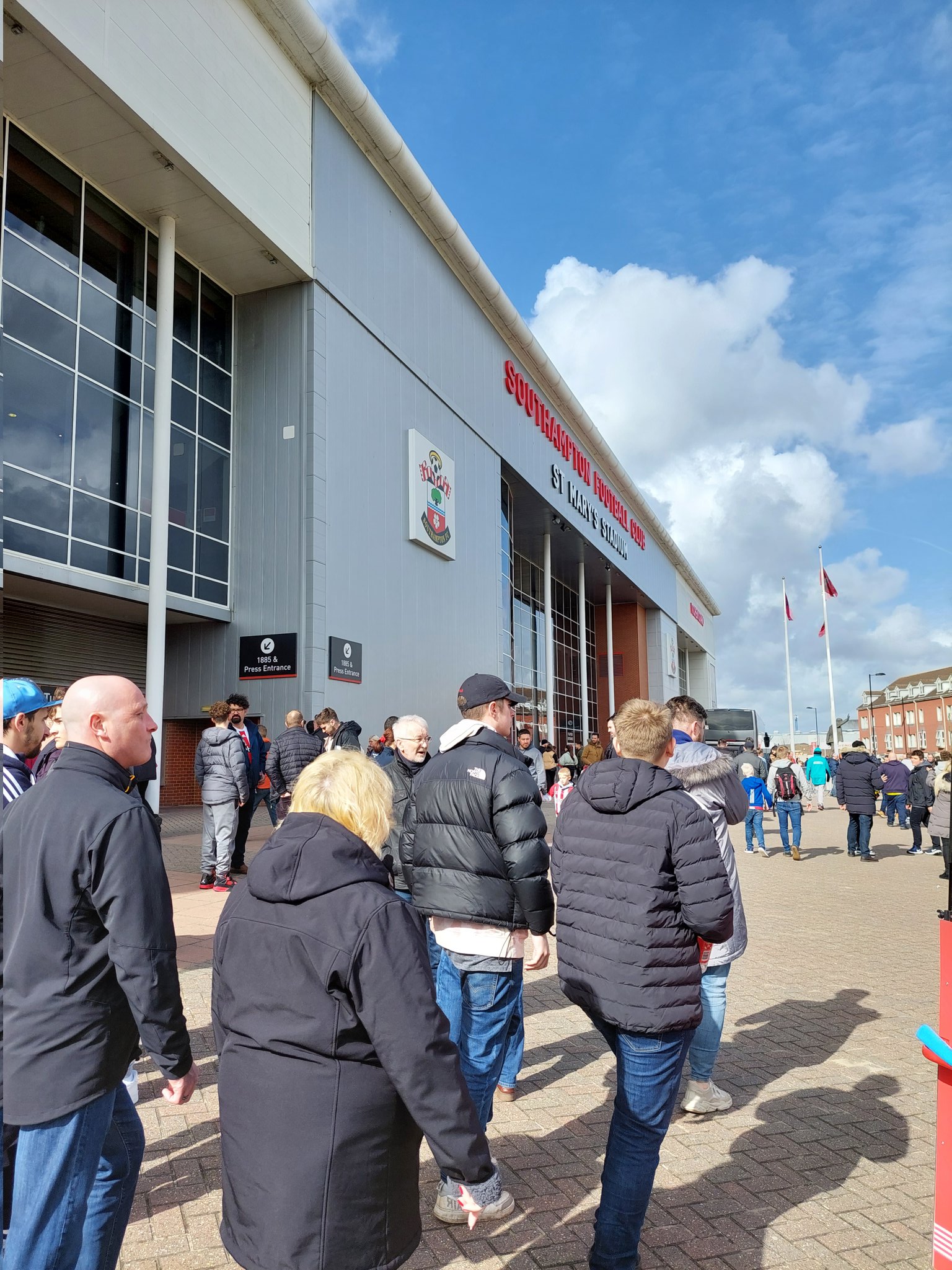 Having been suitably fed we headed off towards the ground. It was about a mile away and we got to take in some of Southampton’s vibe. I’ve been there before, in the summer, and it’s a nice place. It doesn’t have the same feel as Portsmouth with its historic docks and big ships but it feels more modern.