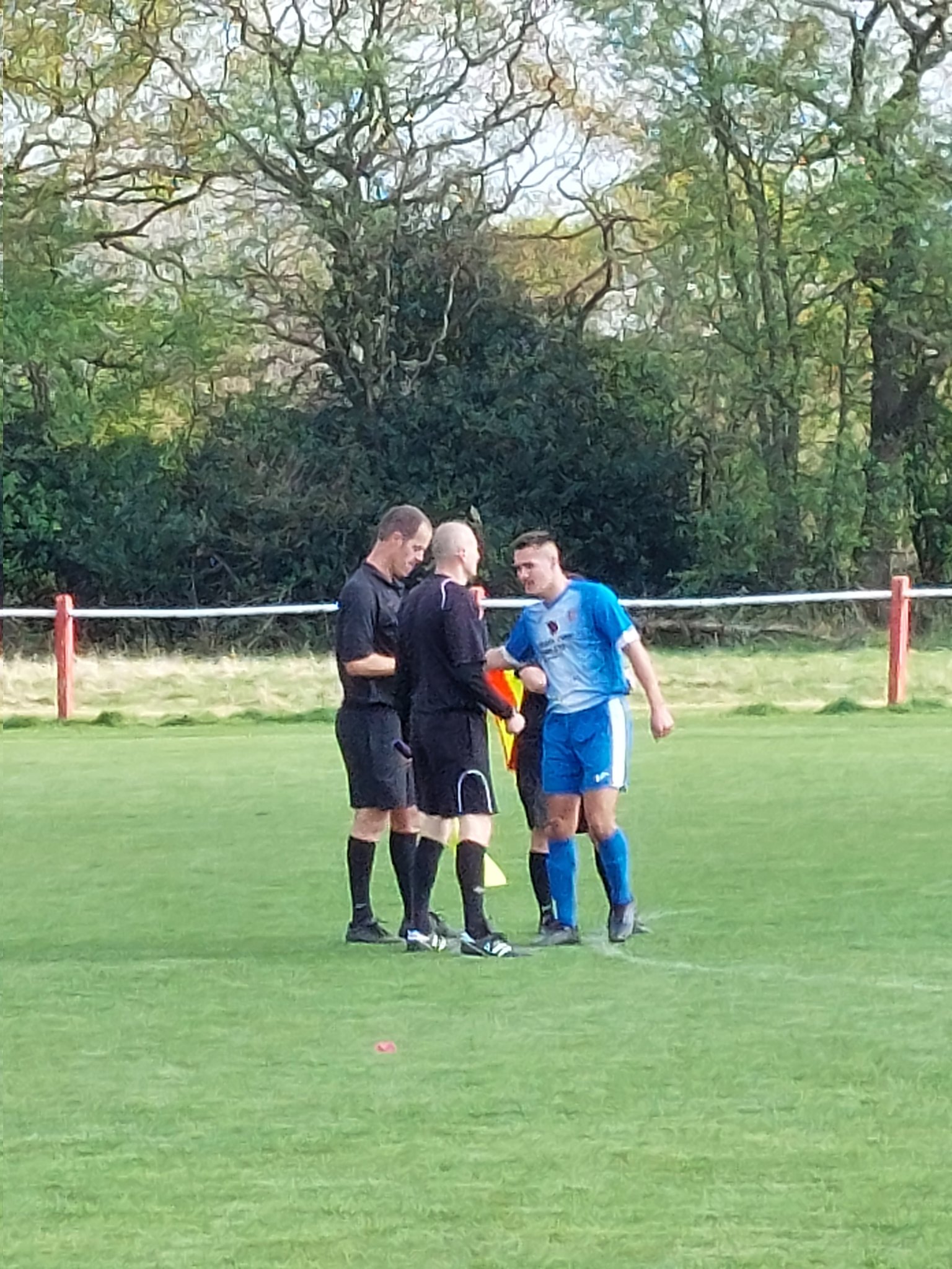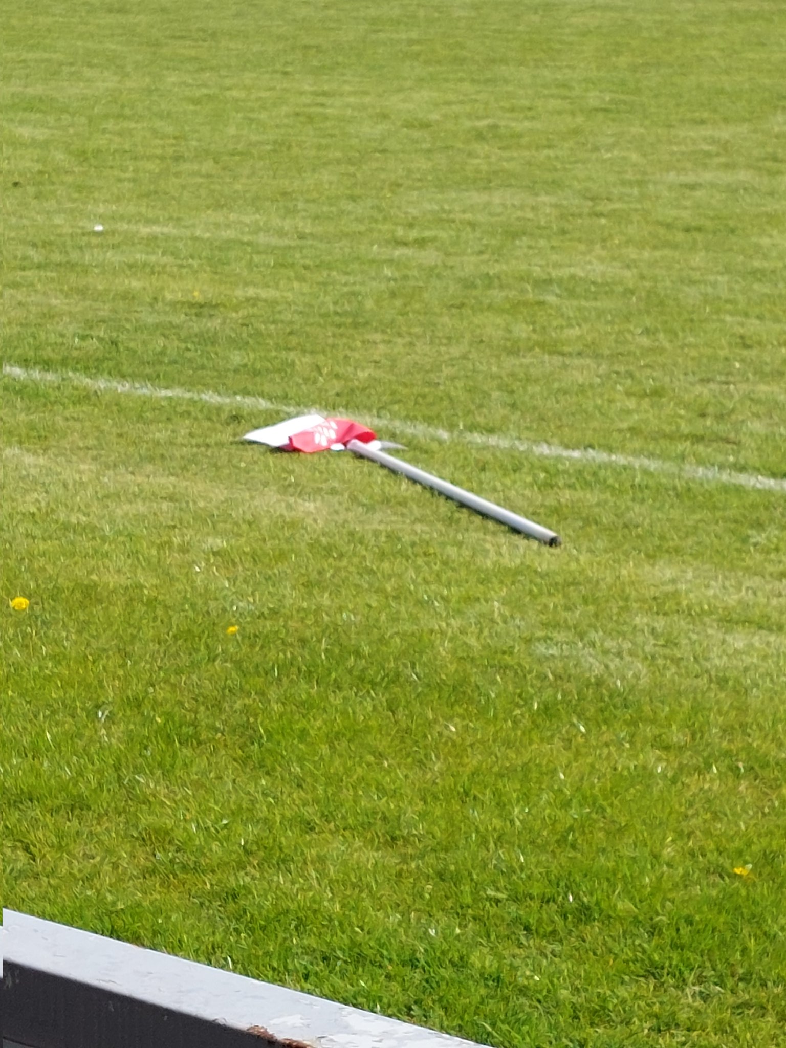 The drama mounts as the wind knocks over the halfway flag and it’s left poleaxed on the side of the pitch for several minutes. I consider calling the FA and asking for advice but the linesman puts it back, therefore getting at least one thing right during the course of the game. The referee starts making rules up and putting players in the sin bin in some weird ice hockey mash-up. I’ve seen games at this level since the rule was brought in but never seen it actually enforced. You get ten minutes in the sin bin for dissent. Due to the referee’s staggering incompetence Lichfield City finish the game with eight players. Only one of them was actually sent off. Presumably for calling the referee a cunt and not being a physio.