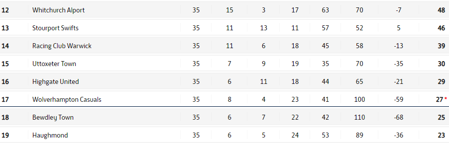 Highgate are currently in P16 (of 19 teams) and should probably consider getting a result today in order to avoid relegation. Unfortunately for them they face Lichfield City, the team in third who’ve scored more goals than any other team in the league. After a gander at the FA’s website I discover Highgate are already safe and I should probably have walked to Wolverhampton as the Casuals are in danger of being relegated by Bewdley Town.