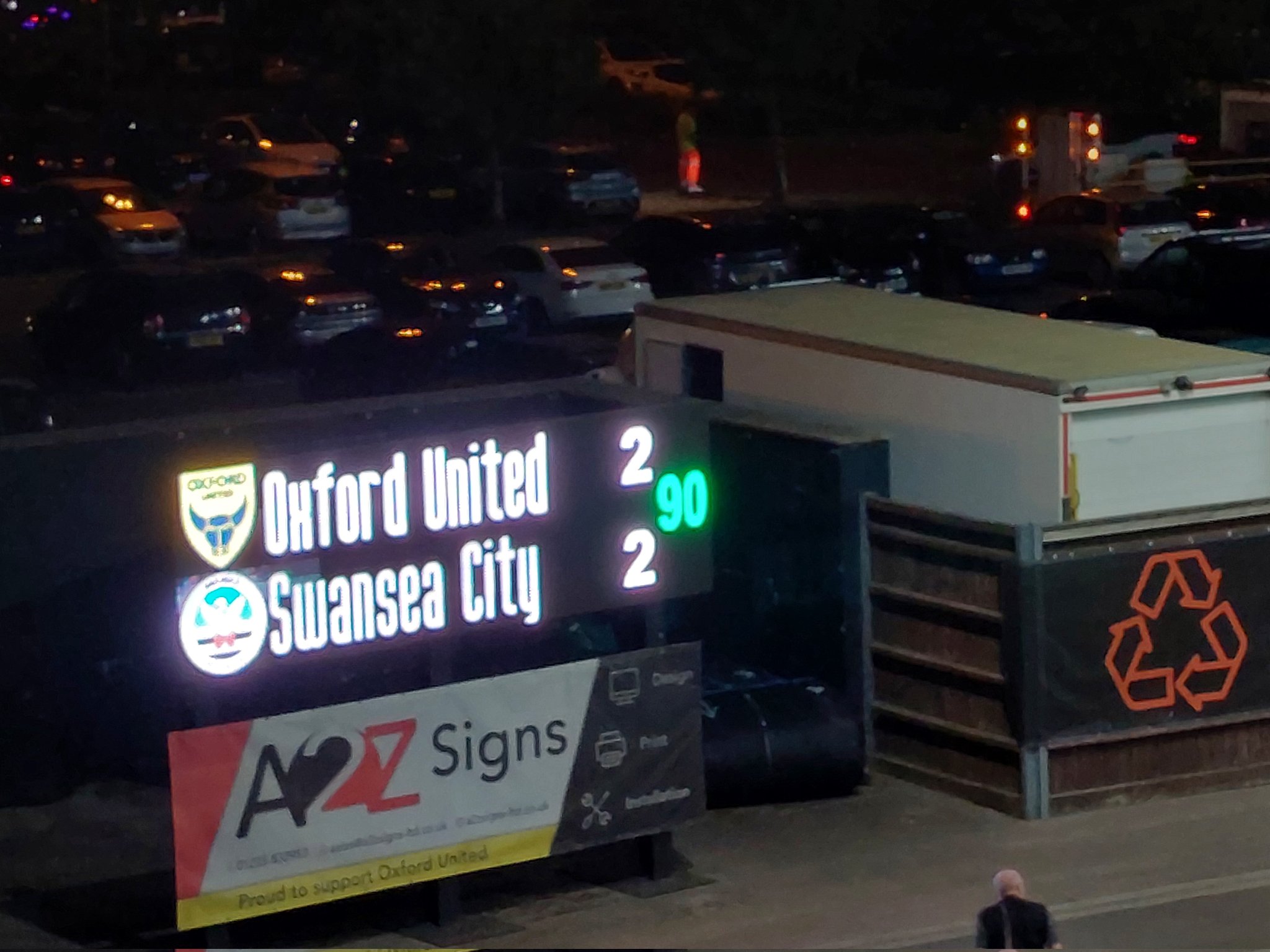 We were debating leaving early to beat the rush but with the game tight and tense, there was no way we could do so. We were rewarded for our patience after Swansea’s defending turned into a comical mess. A player tripped during a goal mouth scramble and a free kick right on the edge of the box was Oxford’s salvation. The resultant strike was straight into the wall but deflected into the opposite side of the goal. Like the equaliser there were elements of luck but Oxford had earned it.