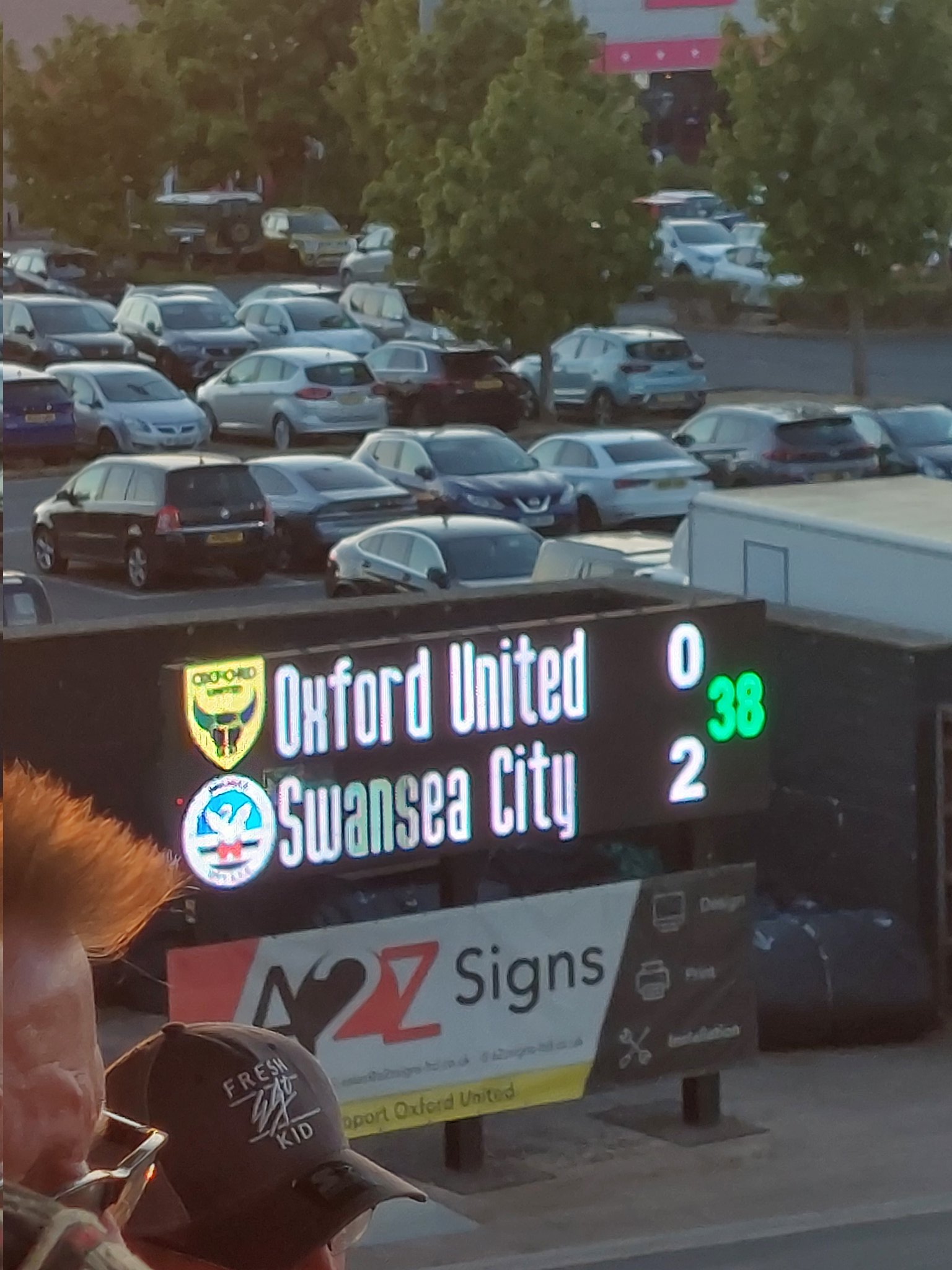 At the hour mark, and with the sun setting over the car park, Oxford began to improve. Could it be a coincidence this happened right after Maria accidentally launched one of her hair grips over the row in front in a moment that almost woke up the surrounding fans? Or maybe because Swansea had unleashed their secret weapon; former Liverpool and Stoke midfield maestro Joe Allen, the Welsh Messi, and had lulled themselves into a false sense of security? However the footballing gods reached their decision to allow Oxford back into the game it was Alex Rodriguez (Gorrin, not A-Rod) who caused the dream to become reality. Pressing the keeper he luckily deflected Steven Benda’s kick into his own net. 1-2, game on.