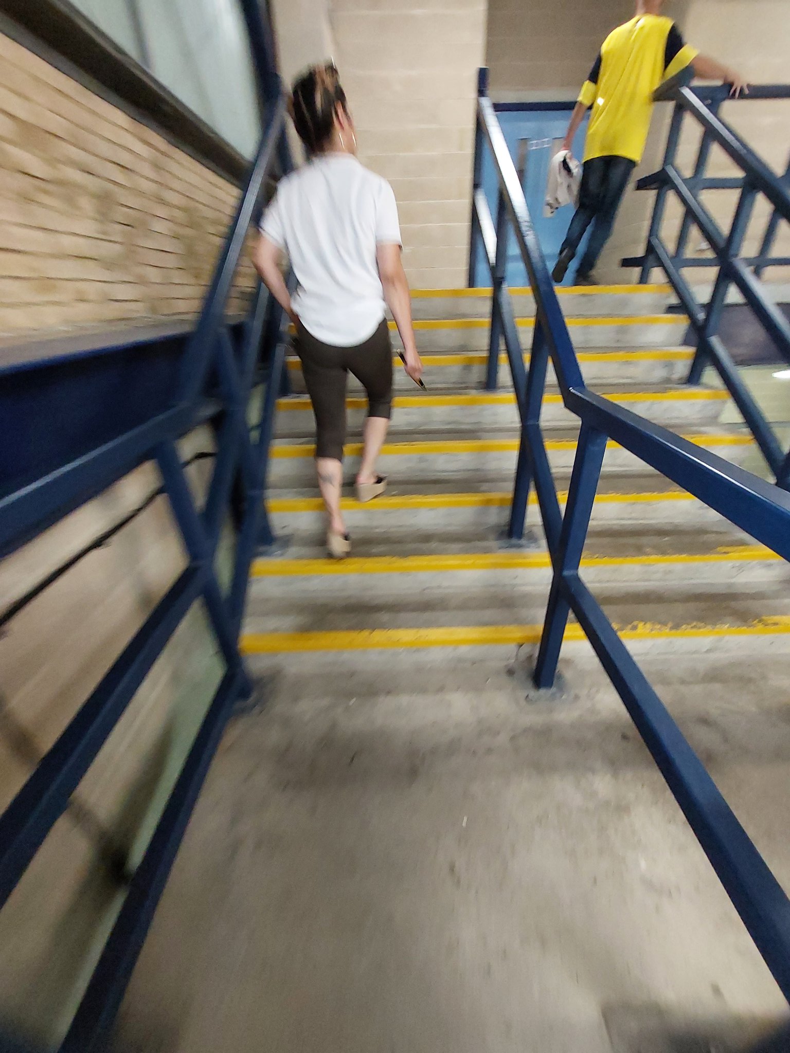 In we go and into the stairwells. Modern stadia have this thing about stairwells and hiding the mechanics of the building. Leaving you with the kind of stairwells that could be in any massive building. Is it a stadium? Or a hospital? Or a car park? I like the club colours on the rails and floor edging here.