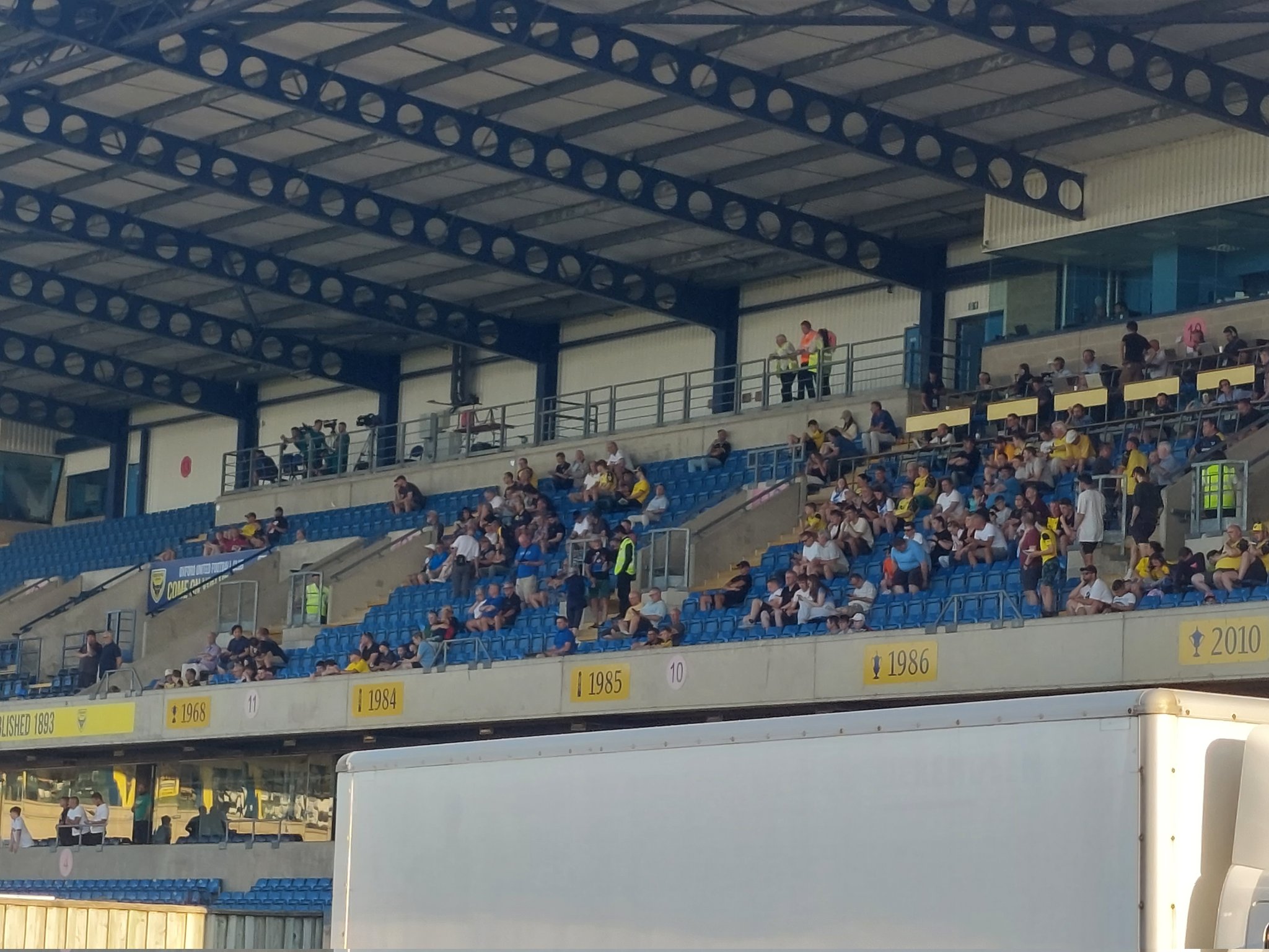 Off to our right is the sun-soaked ultra end. It looks very warm there and I’m quite happy in the shade of my beloved South Stand. The stands are uncreatively named. The away stand is the Planet IT stand. The other two stands are named for their geographical location. Could have called it the Grenoble Stand after the street it’s on? The East Stand could have been the Fry’s Hill End as it backs onto Fry’s Hill Park? Or name it after a famous player like Ron Atkinson or John Aldridge? How about Joey Beauchamp?