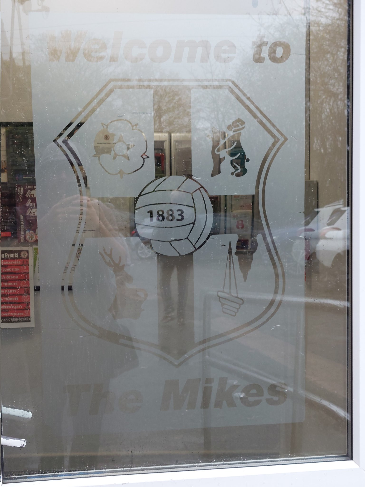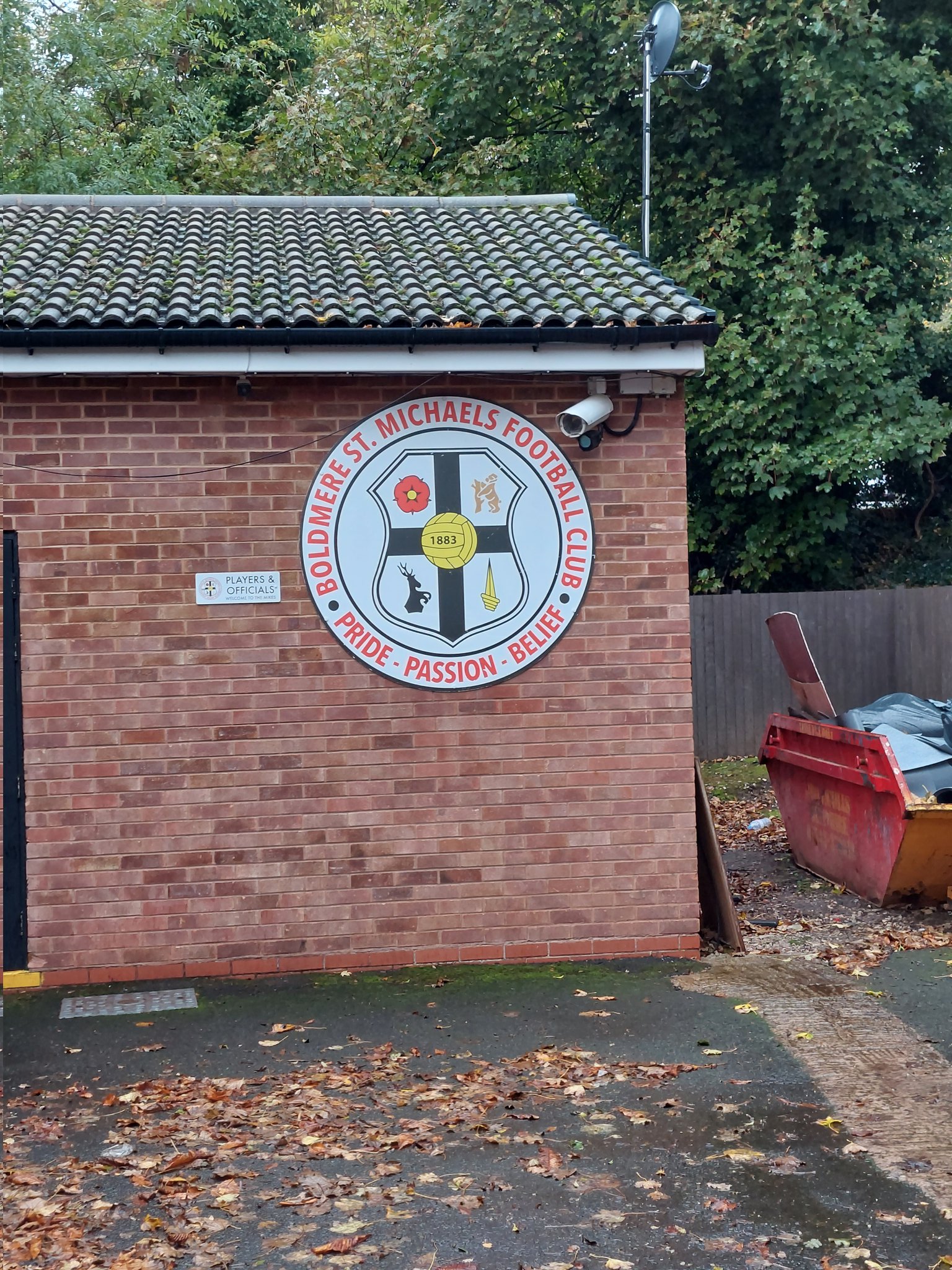 Welcome to Boldmere St Michaels FC, home of pride, passion and belief. It’s not busy today and we’ve got an attendance of 41 (I counted). It’s a little sad to see these numbers but with Villa at home with the same kick-off time it’s probably not a shock. The Mikes have a nice little clubhouse with plenty of seating, a dartboard and TVs showing Sky Sports. Arsenal have just won at Chelsea as we walk in. I resist the urge to have a pint until half-time and we head out into the ground. Before that I just need to get the badge in.