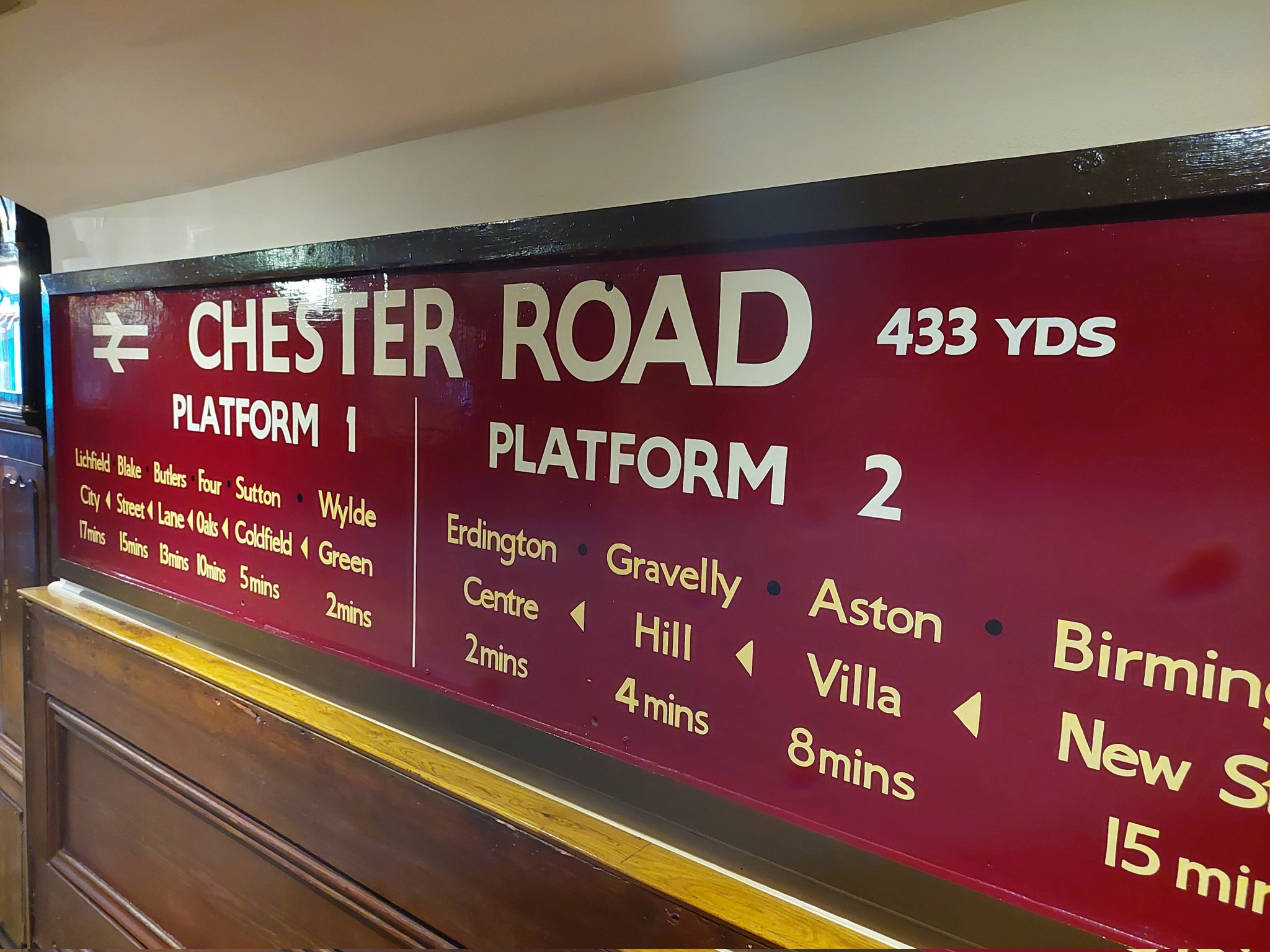 I’m on the train today as Maria is at work. I’m meeting Shaz at the Boldmere Tap (see above) and as I get to the train station, I realise today is the day I tried to get tickets to Villa vs. Man Utd and the trains are going to be packed with Villa fans. For geographical context the line out of Birmingham to Lichfield calls at Aston first and then Chester Road, where we’re getting off, a few stops later. Predictably I’m surrounded by Villa fans. I also see Jason from the Red Lion in Bromsgrove. I think he’s a Villa supporter (correct me if wrong) and is on his way into the city today.
