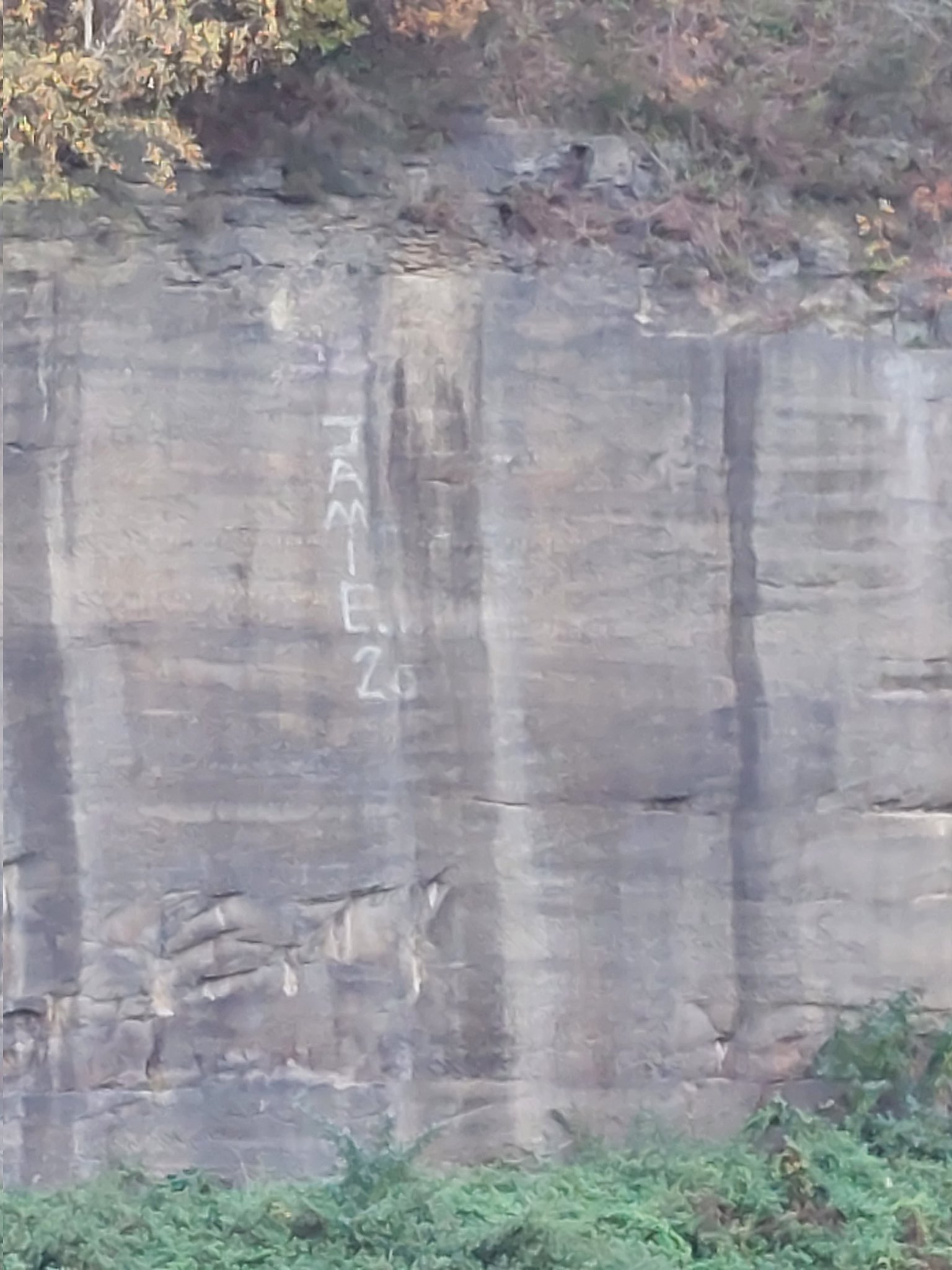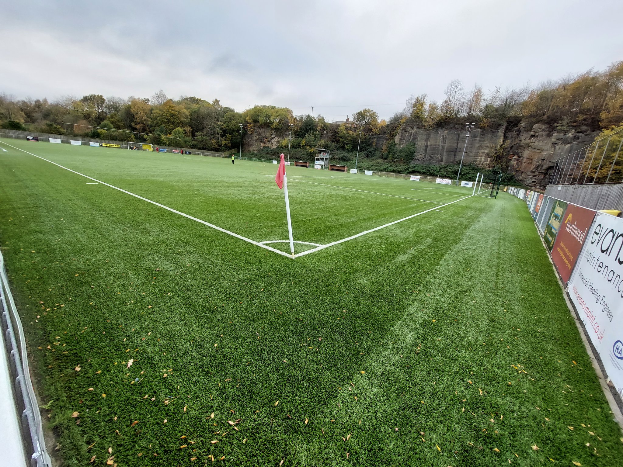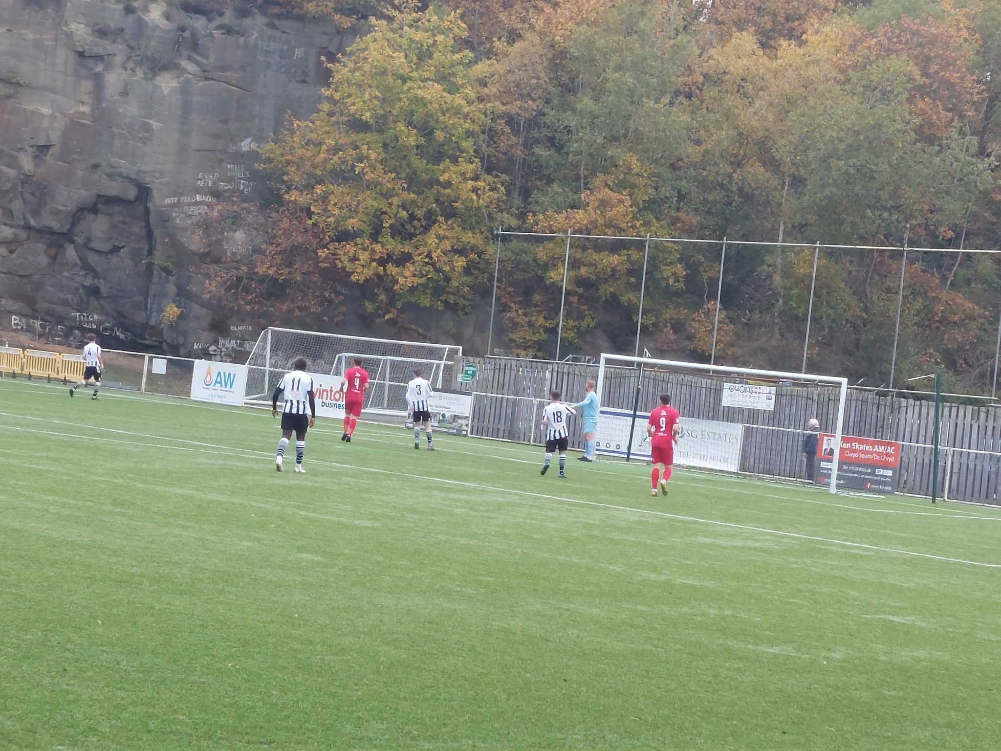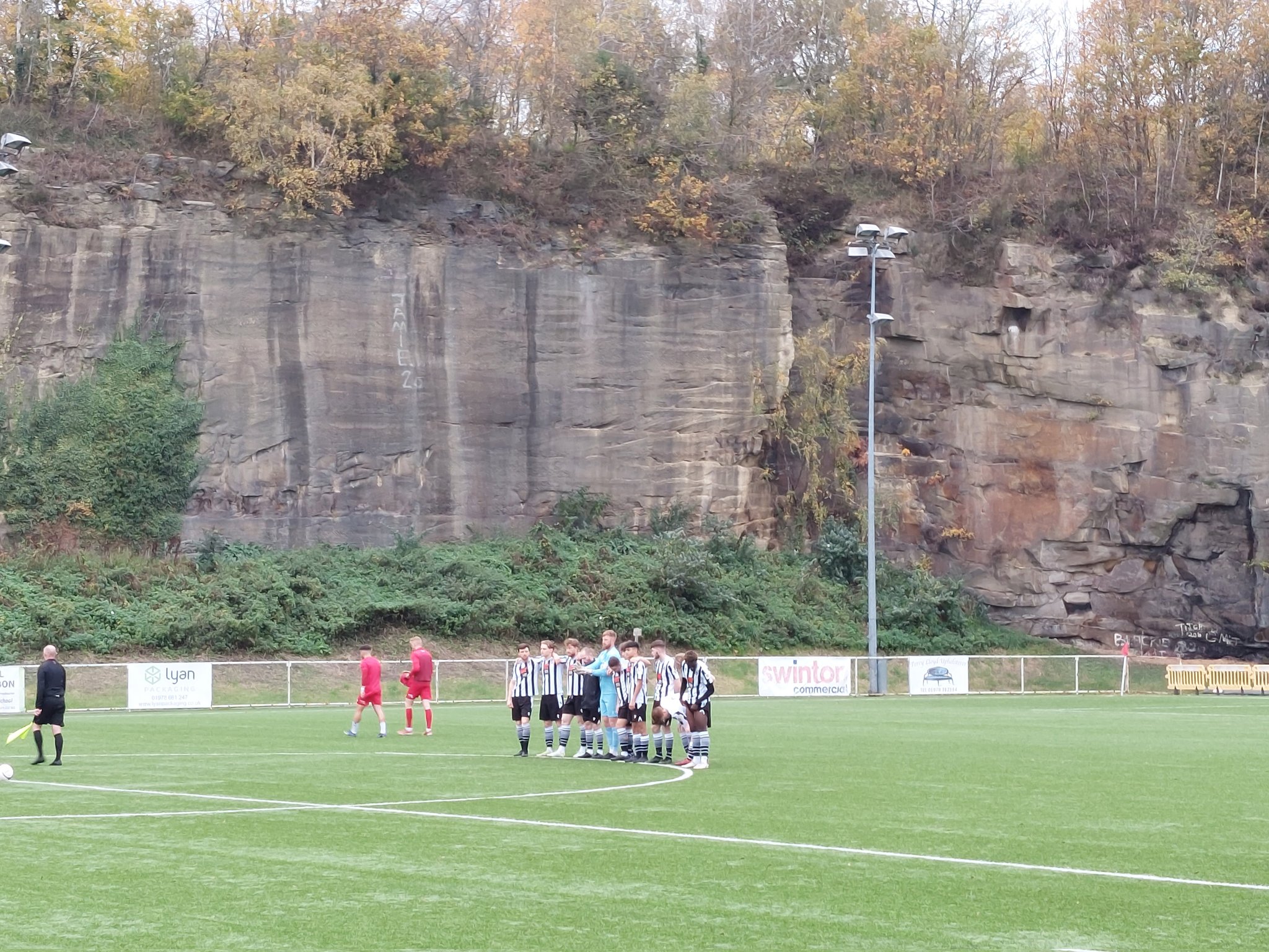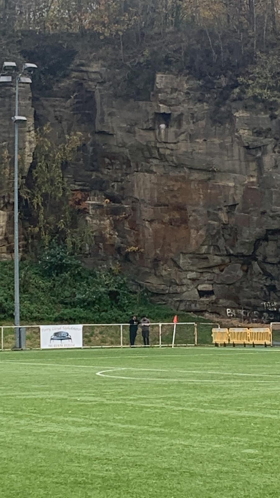 During the pre-match minute’s silence (for stadium announce Ian Reece), I spot this graffiti halfway up the Rock. Respect to Jamie 20 for however he managed to do that. I assume he rappelled down from the top of the cliff because there’s nowhere to put a ladder at the bottom. We get underway and Cefn take an early lead when a misplaced pass finds the right winger who cuts inside and curls one in the far corner. 1-0 Cefn!