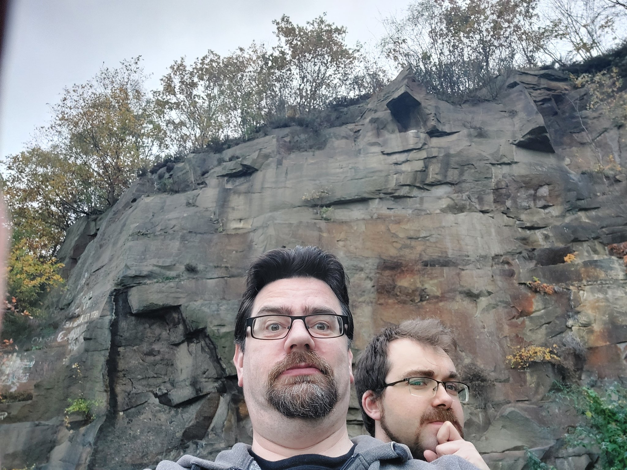 Around 11am and we head off. Mike Kilby is up for this one so he’s in the back of the car while Maria is driving. We come off the motorway pretty early because no motorways go to Cefn-mawr. After a solid stint on the A5 and crossing the border into Wales we’re at Rhosymedre (no, I can’t pronounce that). The county we’re in is Wrexham and because I’ve not spent much time in Wales before I’m a bit confused. For people who’ve never been to Wales (outside of Cardiff) everything is in two languages, so I suddenly find myself learning a lot of Welsh.