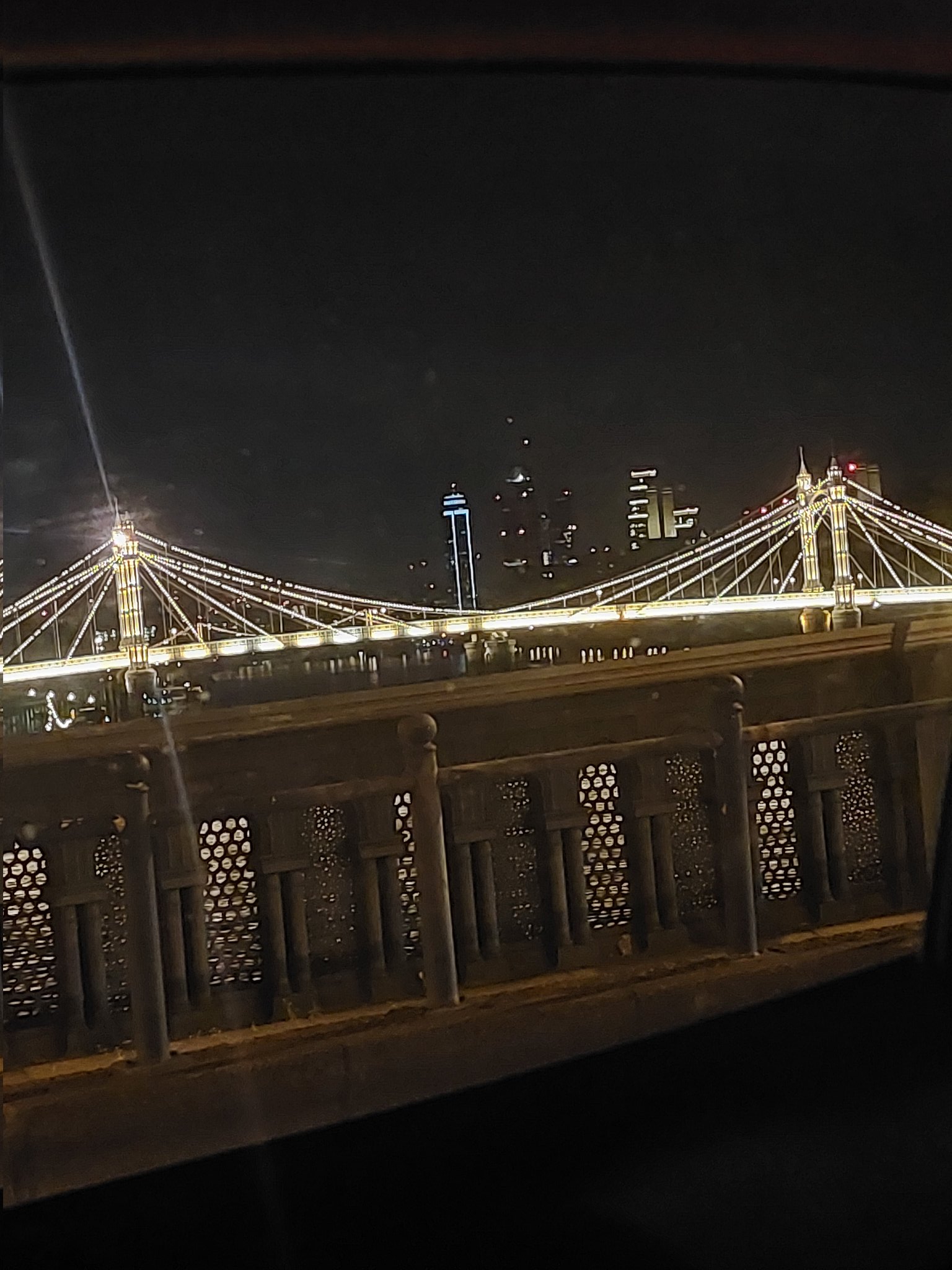 Anyway, I had a great time. Here’s a picture of Albert Bridge, lit up at night, as we leave London. Hope this finds you in a fabulous mood.