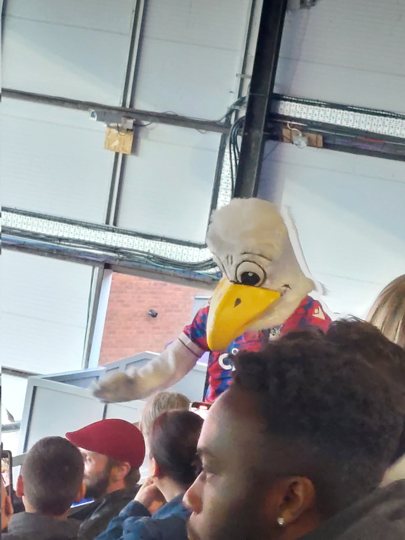 Pete the Eagle is out here rousing up the home fans and, as you can see, the ultras are out in force. I was concerned I wouldn’t get the famous Crystal Palace atmosphere at this game but I did, in spades. Fair play to all these lads for turning up and making a racket for the U21s. We have flags and drums. It’s a bit weird seeing one fella with a megaphone leading the chants like we’re in MLS or Serie A but hey, it seems to work. I can’t knock it. The fans bang out “Glad All Over” by the Dave Clark Five. The fella next to me smacking the metal behind us with both hands for the “BOMP, BOMP” before the chorus. A proper decent atmosphere for this game. I’m glad (all over).