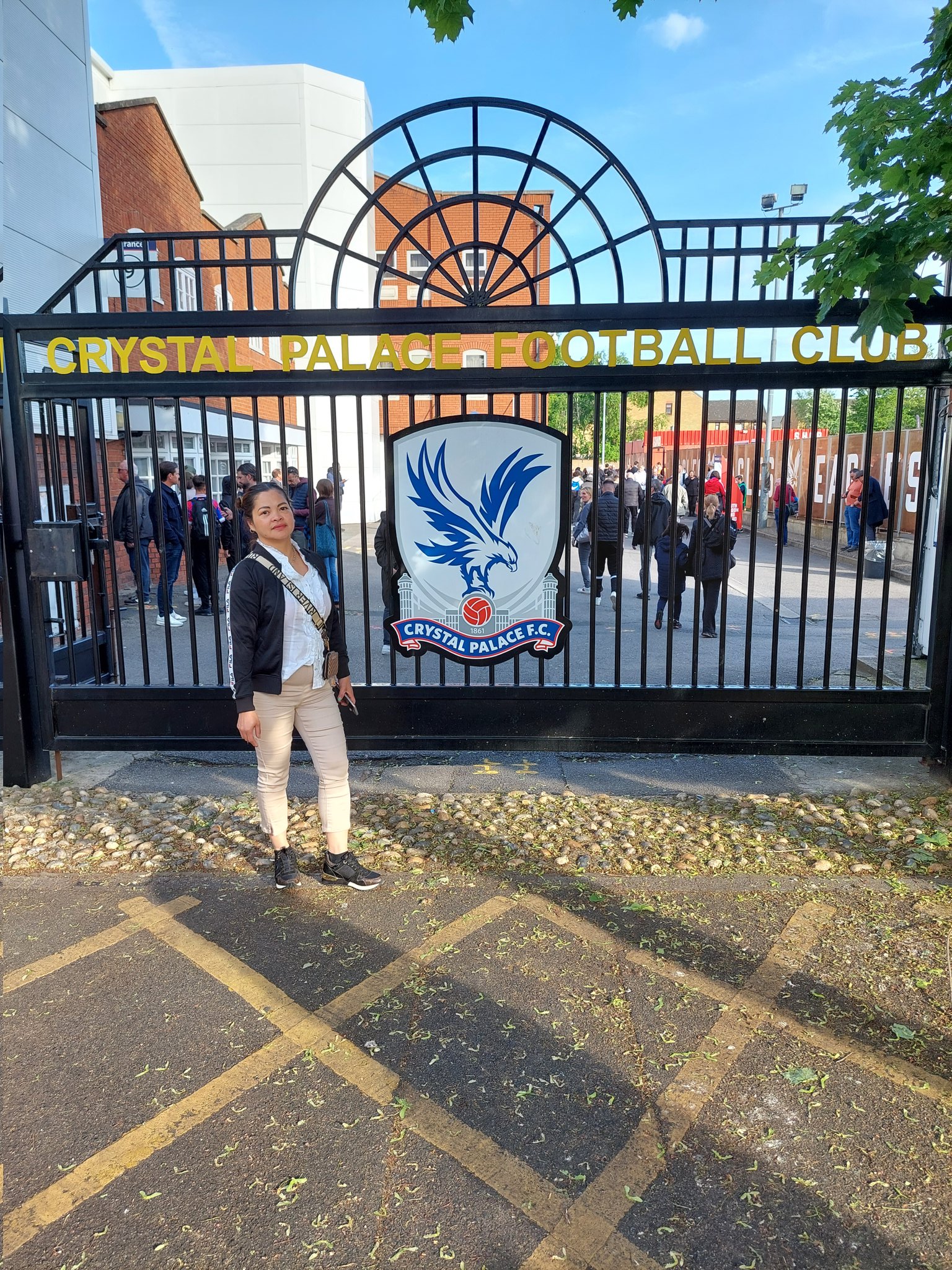 Maria is thrilled to be here, having driven through London traffic for a U21 game. I’m kidding, she was in a much better mood than this photo suggests. Behind her, through the gates, is the fanzone. Set up on match days it has a big screen, beer and food, plus a smaller version of the club shop. I wanted to go and look (the Palace shirt is a banger this year) but Maria needed the toilet so in we go.