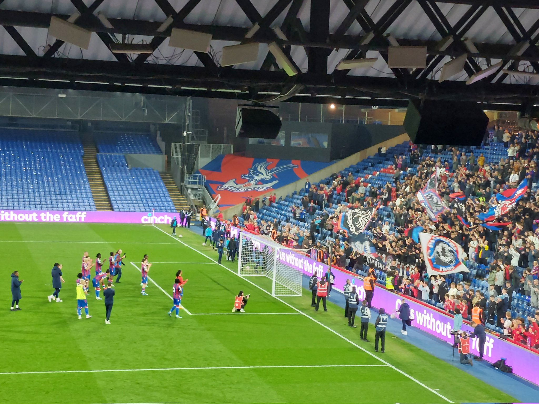The home end is still full though and they make a point of staying to applaud the efforts of these young Palace players. The players reciprocate and what a lovely little mutual moment this is. A shame they couldn’t win the trophy. The last rallying call at 2-1 down with minutes to go gave me goose bumps. Incredible support.