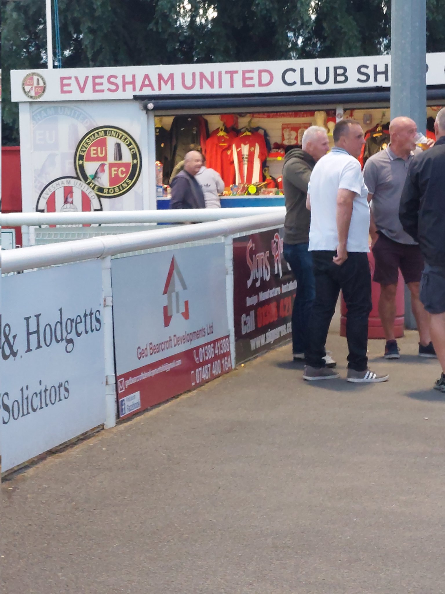 Look at those numbers, eh? 80 grounds. For a guy who, pre-Covid, was on five grounds, that’s not bad going at all. Evesham, aka The Robins, were formed just after World War II by soldiers returning from the war. They’ve existed mostly in Worcestershire and Birmingham leagues. They made it into the Southern League (D1) in 1992 and they’ve been there ever since, barring a brief flirtation with the Premier League under former Coventry City player Dave Busst. He of the horrendous broken leg. Possibly the worst injury in football history. He needed 22 operations and nearly lost his leg entirely. After Busst got them promoted they went straight back down but have since reached the FA Cup first round for the first time in their history in 2008. They lost 2-0 to Torquay.