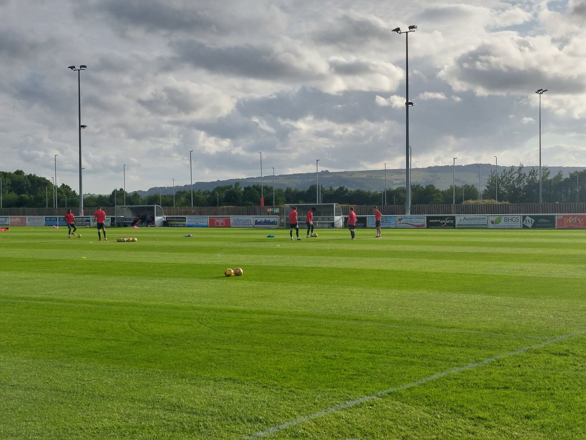 The Spiers & Hartwell Jubilee Stadium is fairly new. It opened in 2012, with former Man Utd manager Ron Atkinson cutting the ribbon. It’s a basic ground with one small main stand and an additional covered area. Plus bar, shop and all that jazz. I had to work beforehand so Maria picked me up in Worcester and we had a 30+ drive to get there. I originally was finishing work at 7pm when I discovered kick off was 7.30pm. Oops. I almost missed it. We left a bit earlier and got there with loads of time to spare. When you turn off the island outside the ground there’s a small car park marked “private”. That’s not for public consumption. We weren’t allowed in there. Drive a bit further up and the car park is right outside the ground. The stewards were helpful and found us a spot.