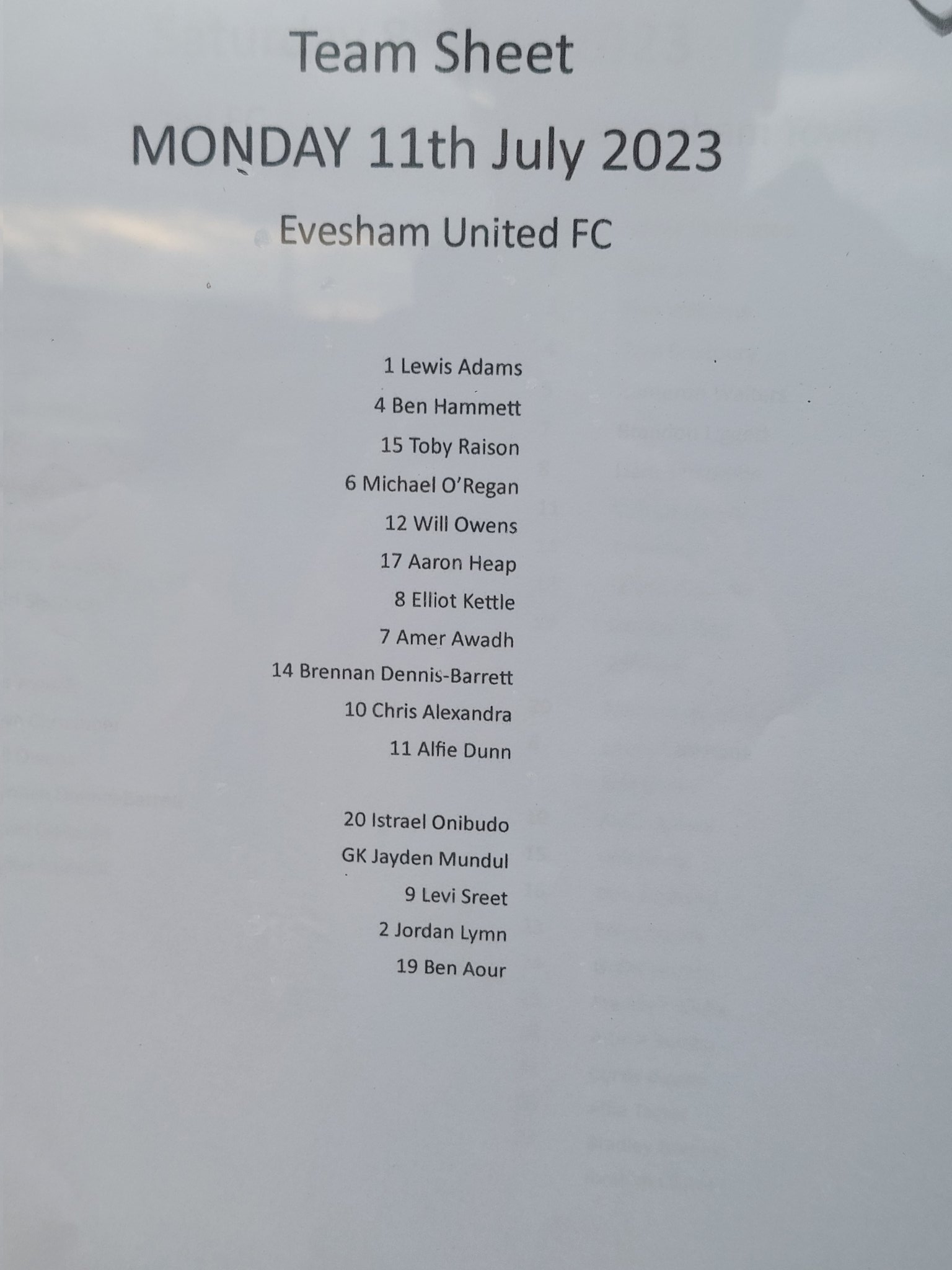 This is the Evesham team sheet. Sporting didn’t bother to post one because they don’t know who half the players are. I also took a photo because it says, “Monday 11th July”. You can look this one up reader, it was Tuesday. Shout out to Evesham #7 Amer Awadh for tucking 50% of his penalties away in that half. Given the way Sporting are playing, there are more to come.